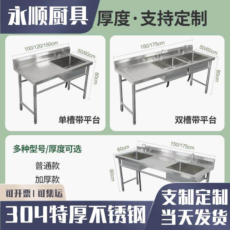 304不锈钢水槽厨房支架商用饭店洗衣台洗菜盆洗碗池带平台洗刷盆
