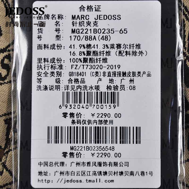 JEDOSS/爵迪斯男装春季专柜新款满针织薄款夹克外套烫钻0235