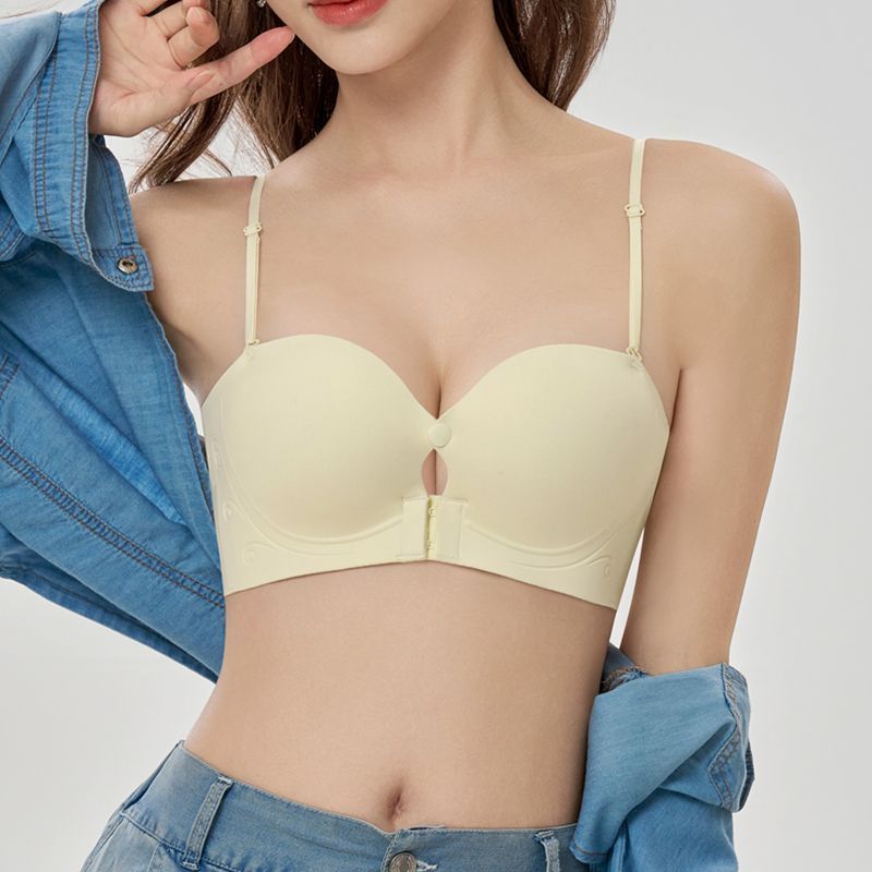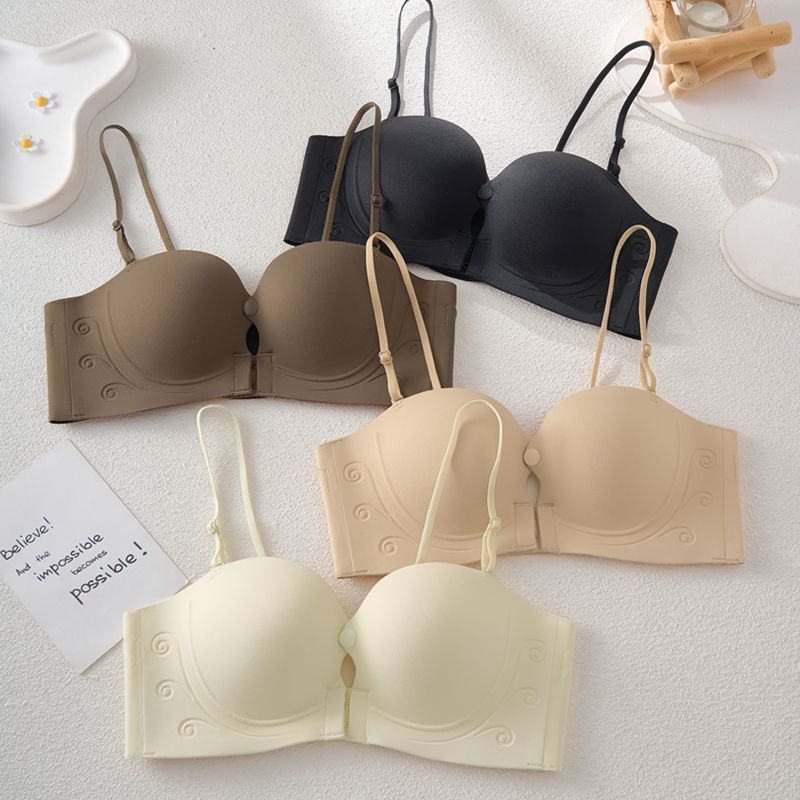 无肩带前扣性感加厚内衣女小胸聚拢专用收副乳防下垂无痕上托文胸