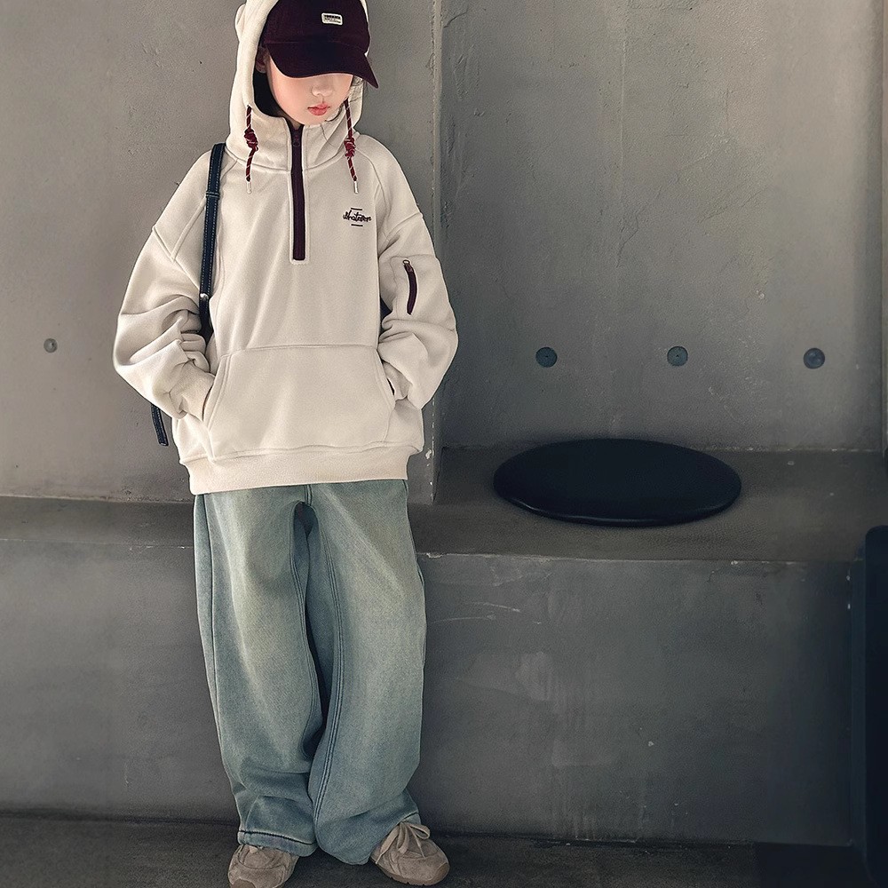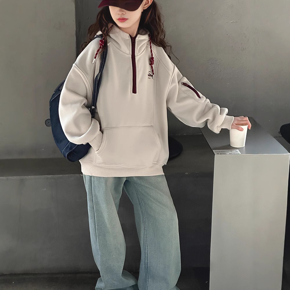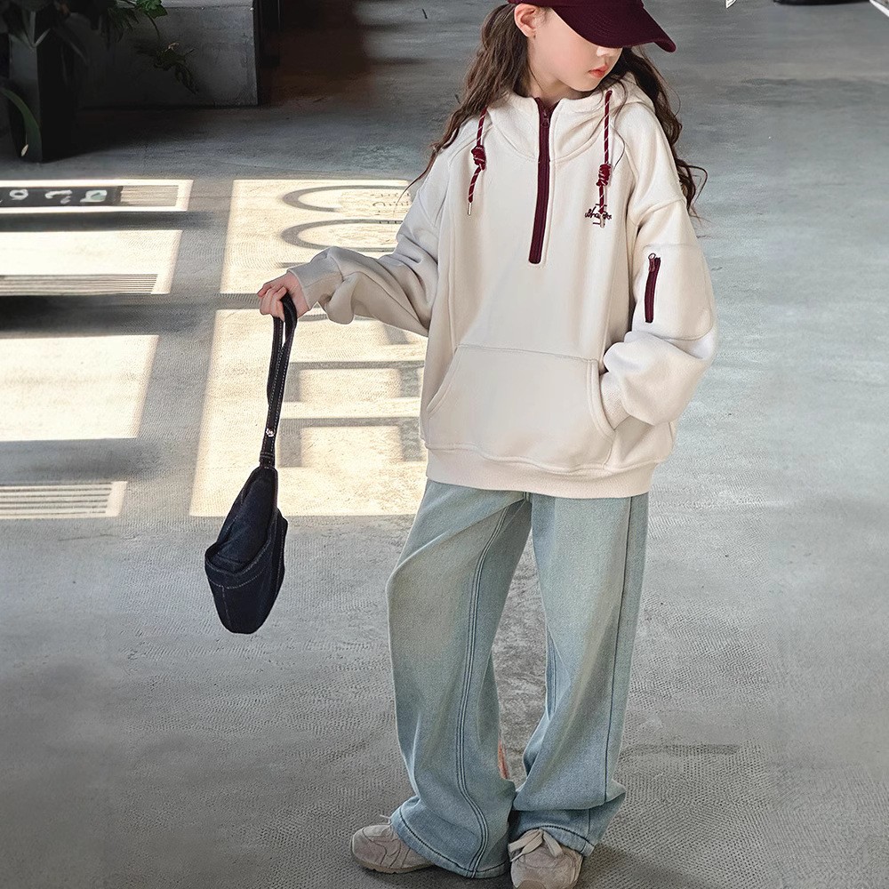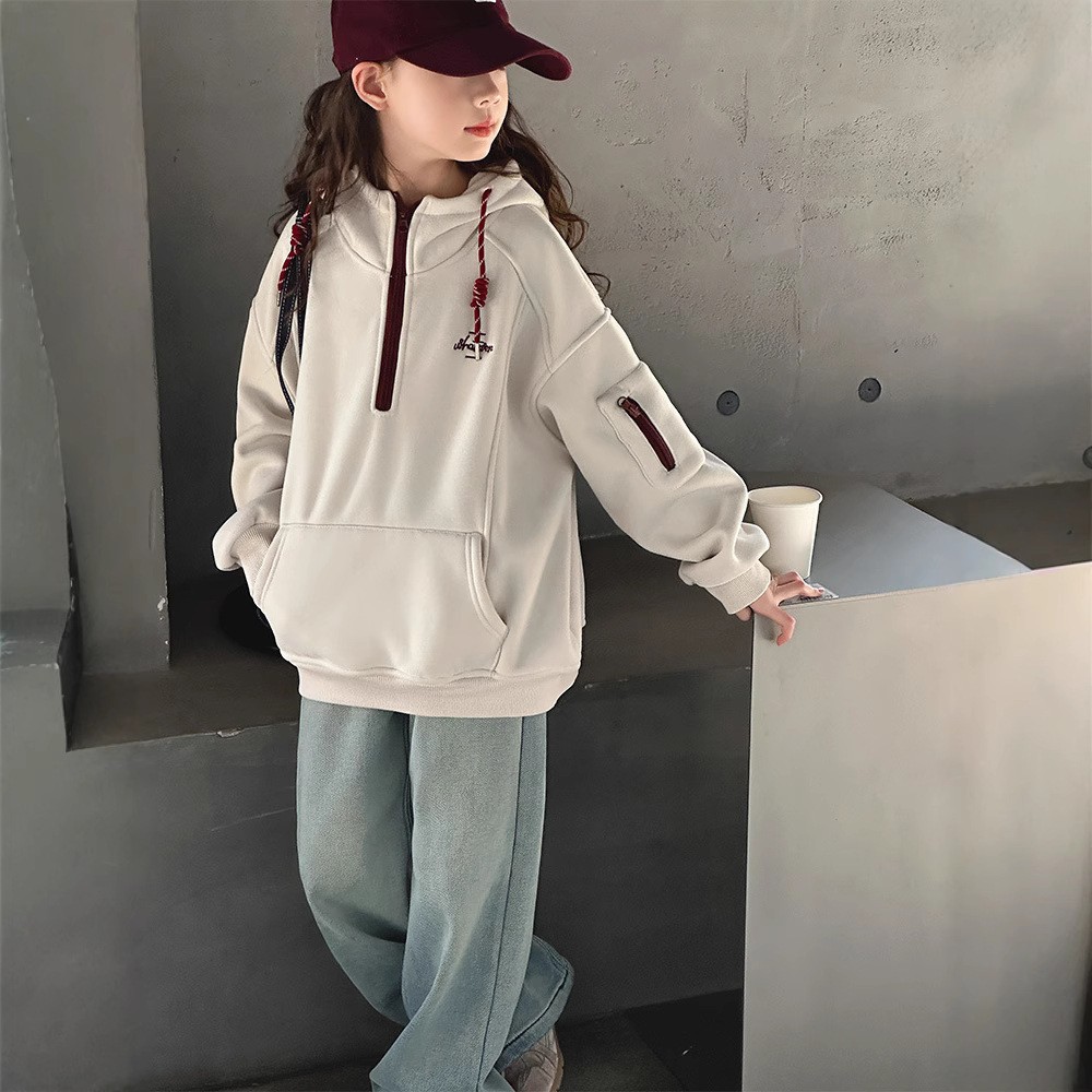 女童加绒卫衣冬季2025新款洋气儿童连帽加厚秋冬女大童一体绒上衣