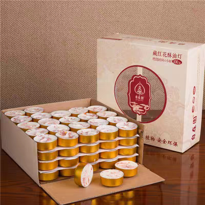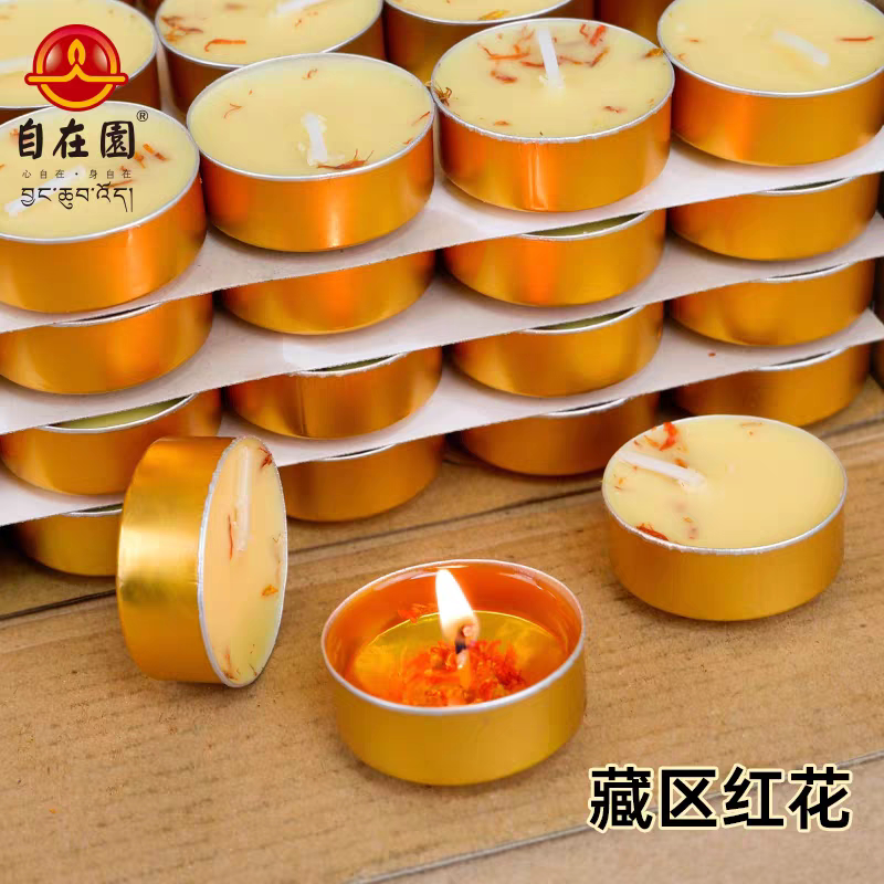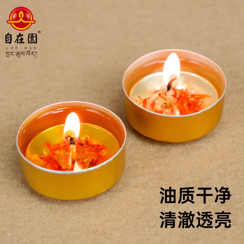 自在园酥油灯4小时酥油灯藏红花酥油蜡烛供佛灯家用长明灯黄壳