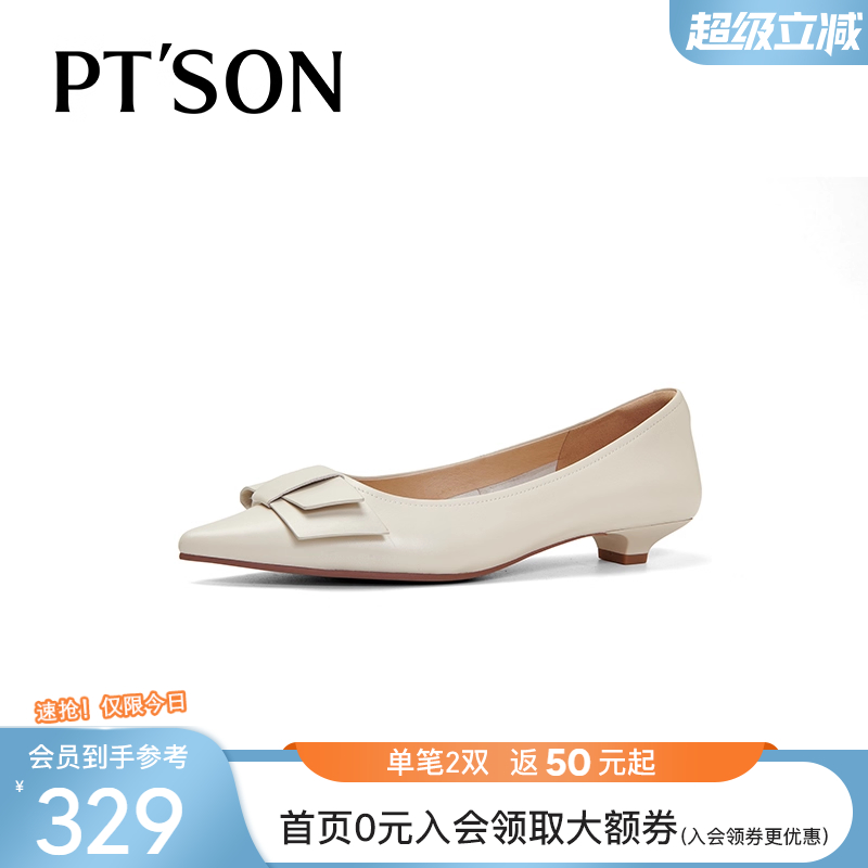 商场同款百田森超软小羊皮女鞋秋新尖头蝴蝶结法式不累脚小跟鞋