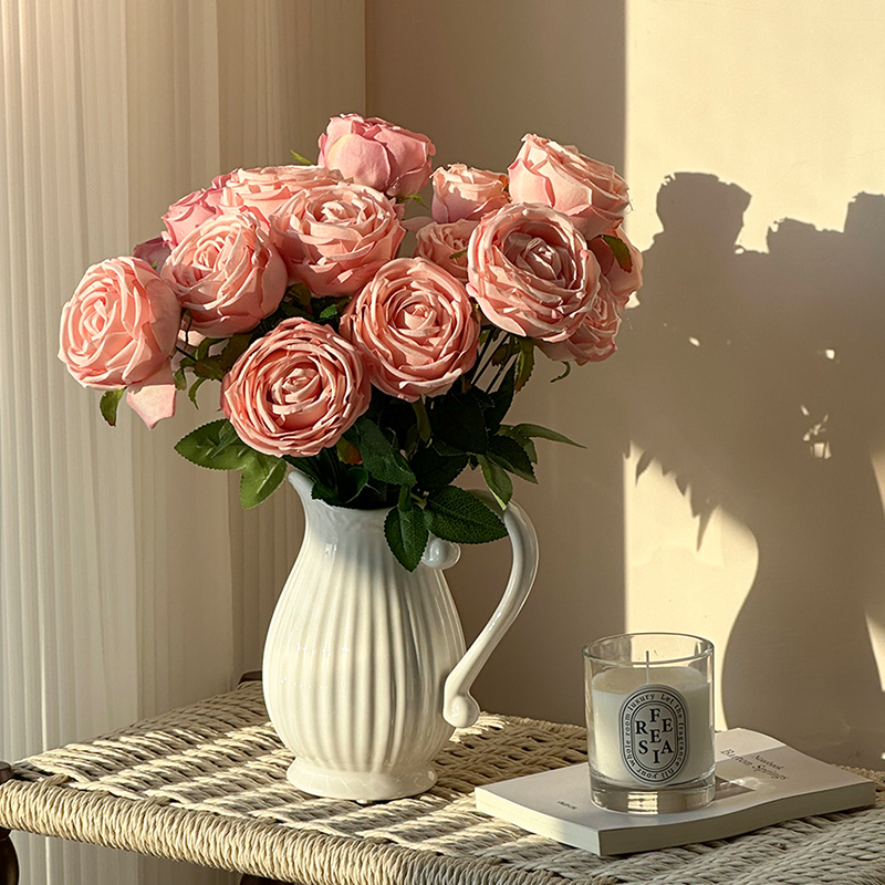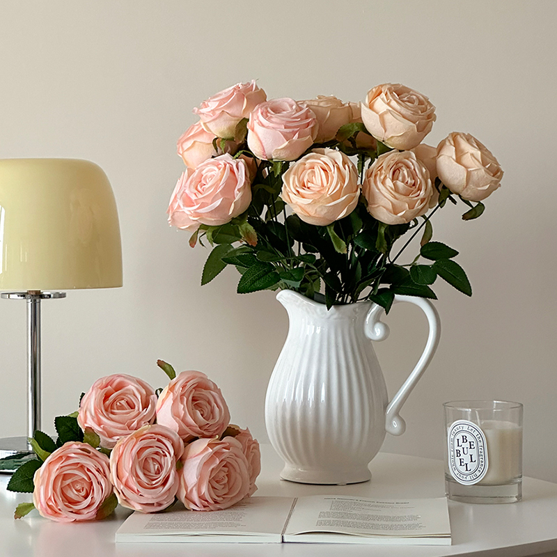 高档轻奢7头仿真玫瑰花假花皇妃玫瑰家居装饰摆件高级感拍照道具