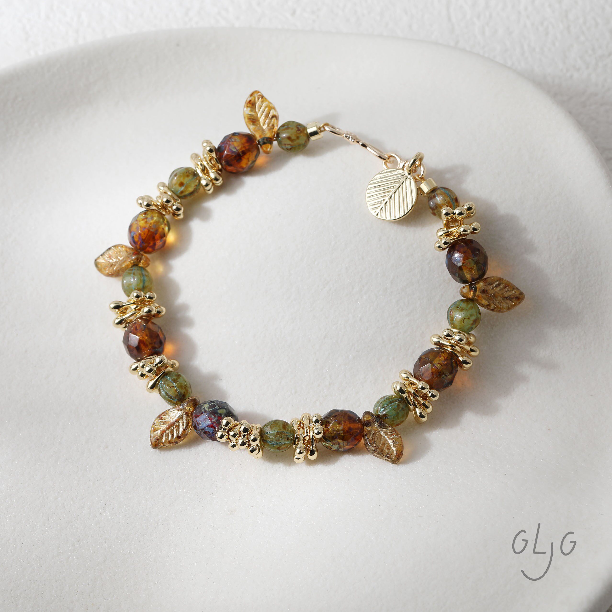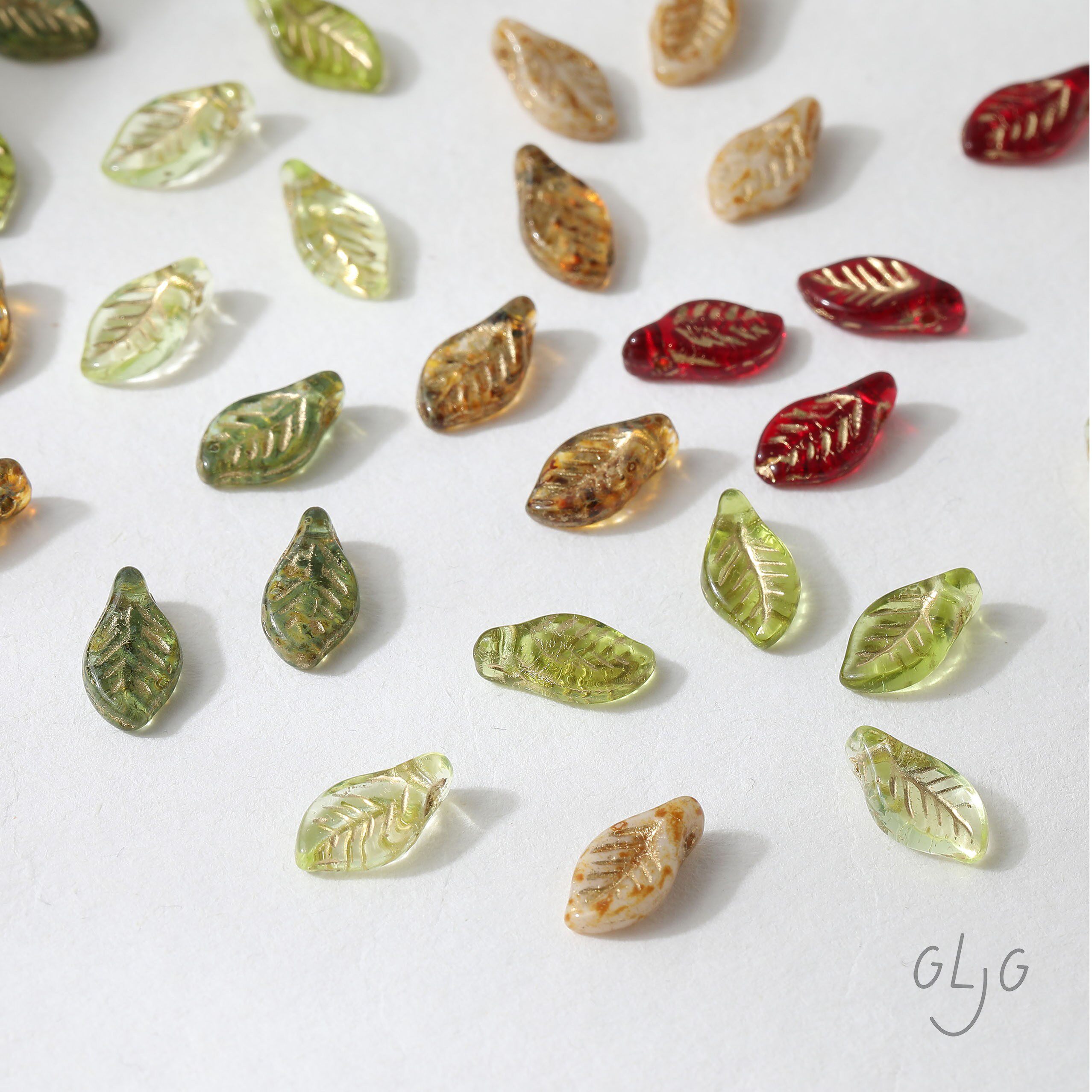 进口捷克珠 横孔描金复古叶子吊坠 diy手作串珠项链手链材料配件