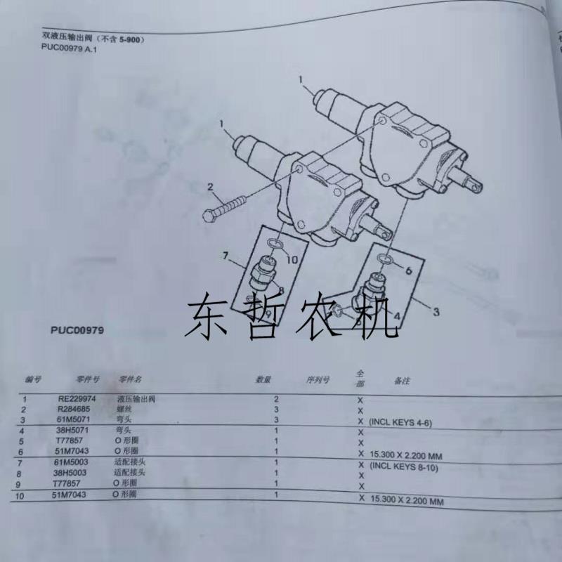 迪尔5-754/854/954拖拉机农机配件单液压输出阀38H5071/135弯头