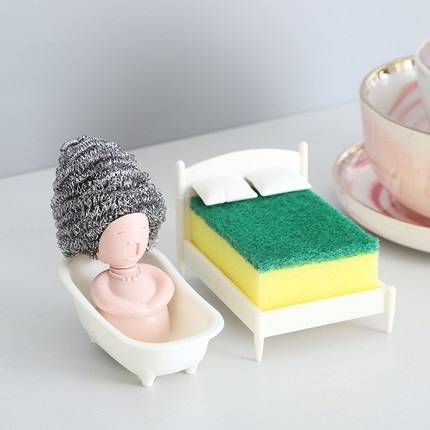 加点乐 创意浴缸清洁球收纳架钢丝球海绵擦沥水架 百洁布收纳小床