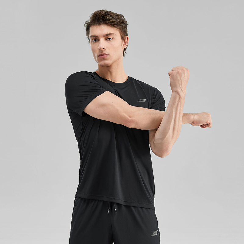 Skechers斯凯奇2025秋男子针织透气运动短袖吸湿速干健身T恤衫