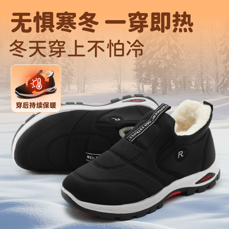 老北京布鞋男2025新款冬季羊毛加绒加厚保暖棉鞋一脚蹬休闲健步鞋