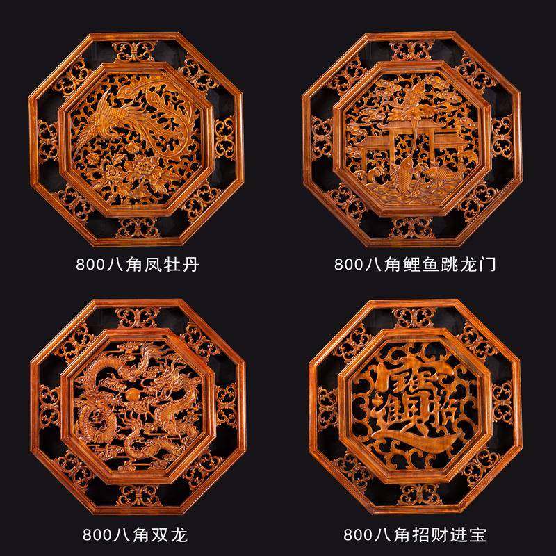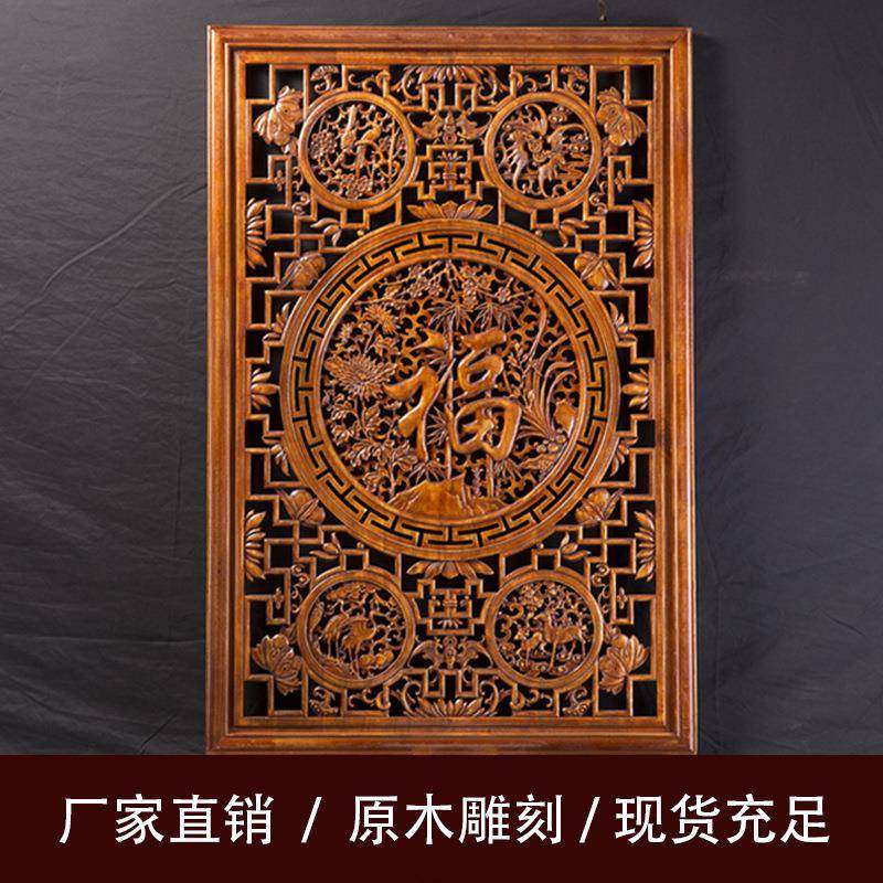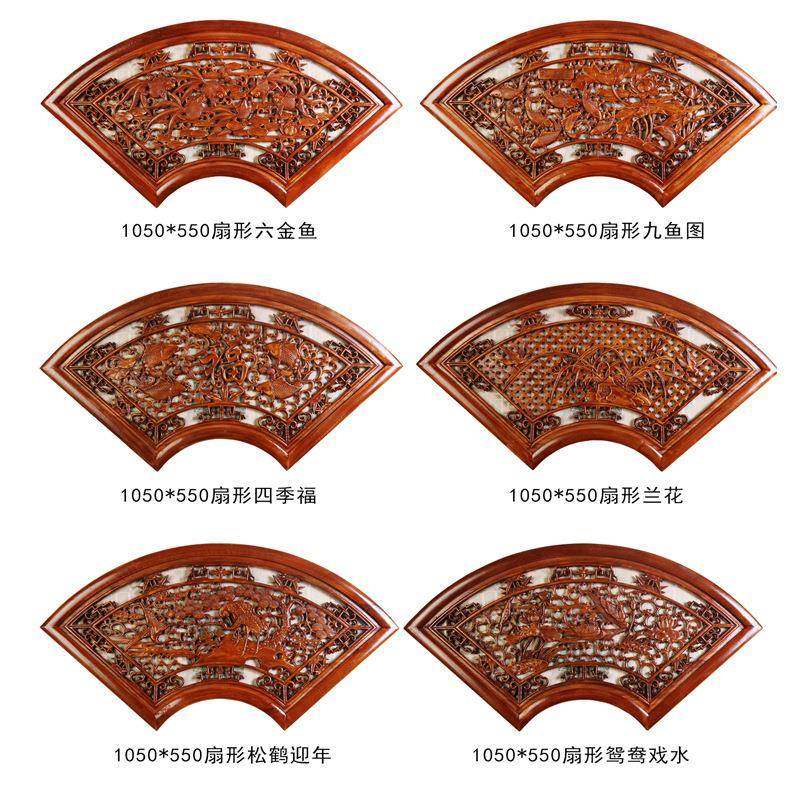 东阳木雕挂件香樟木工艺品仿古中式玄关客厅扇形福实木装饰手工