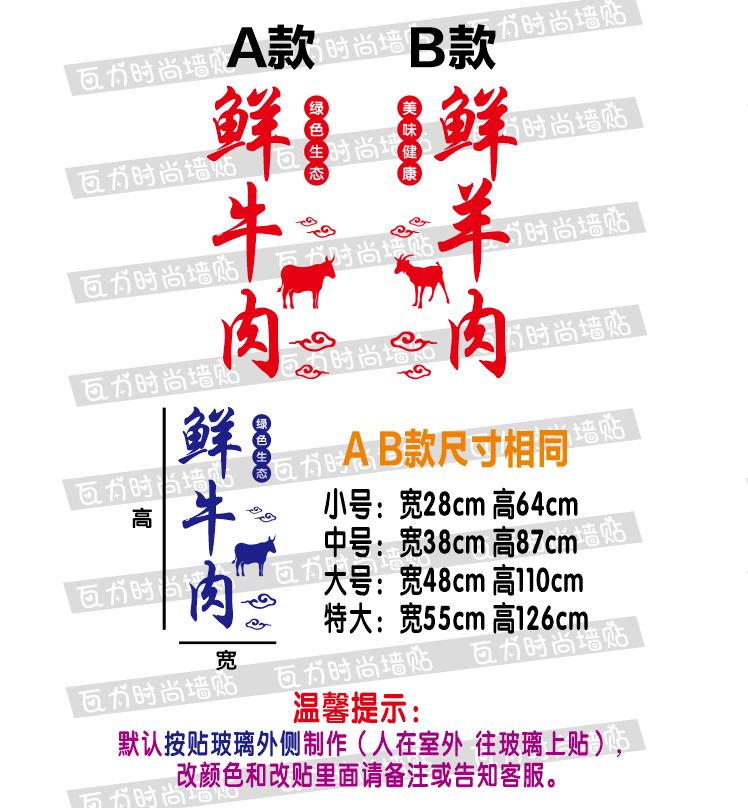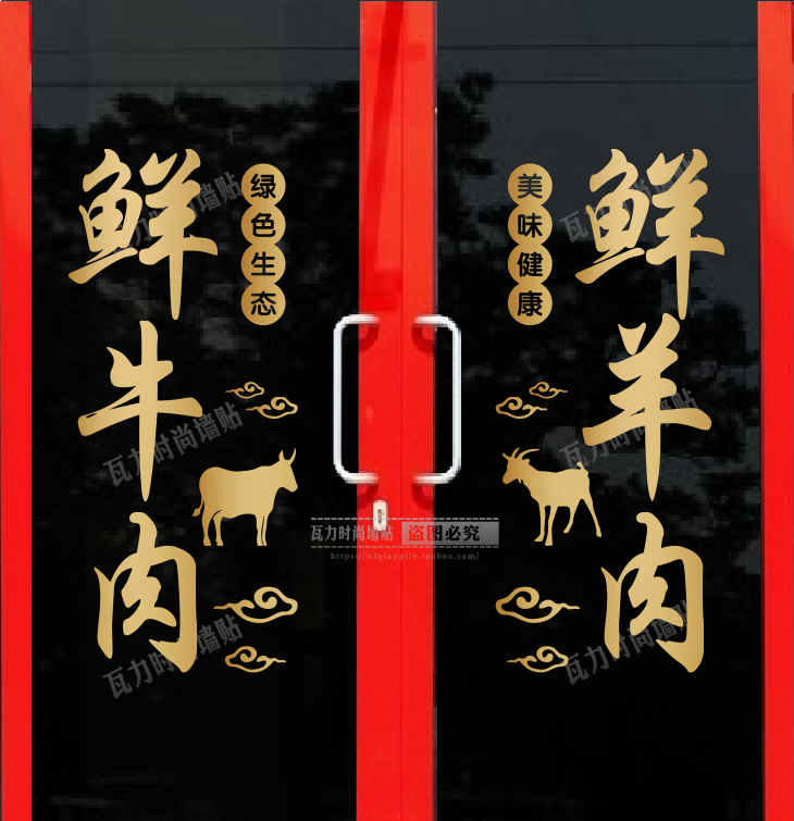 创意鲜牛肉鲜羊肉鸡肉猪肉玻璃门贴纸生鲜店超市饭店装饰广告墙贴
