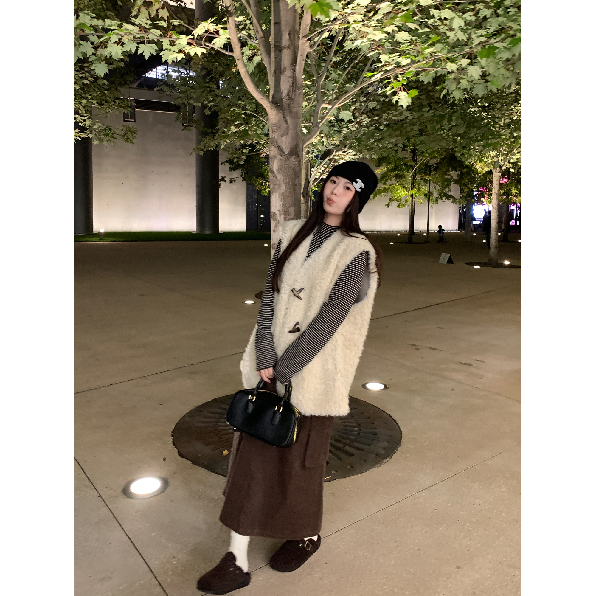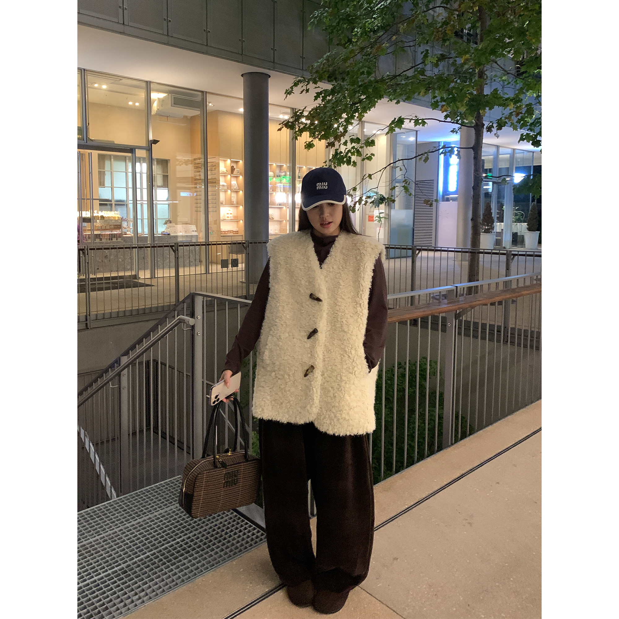 NAZ那子大码韩系高级羊羔毛毛绒马甲胖mm高级感牛角扣时尚外套冬