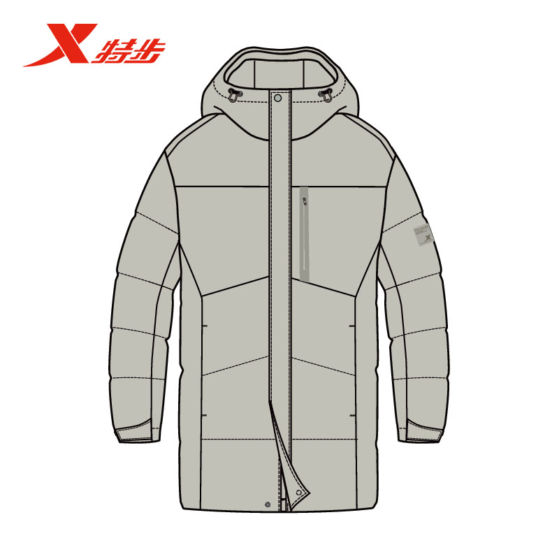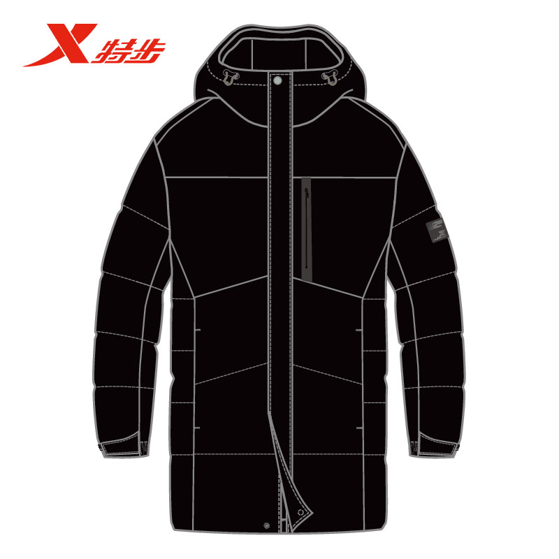 特步中长款羽绒服男2025冬季新款