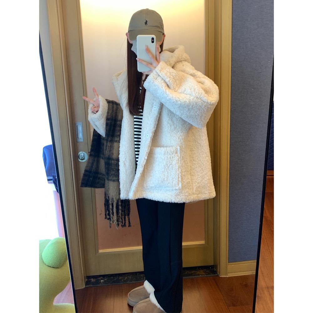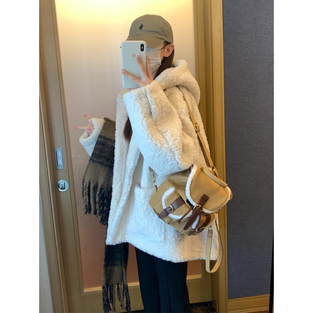 皮毛一体羊羔毛外套女中长款2025秋冬新款韩版休闲慵懒白色厚大衣