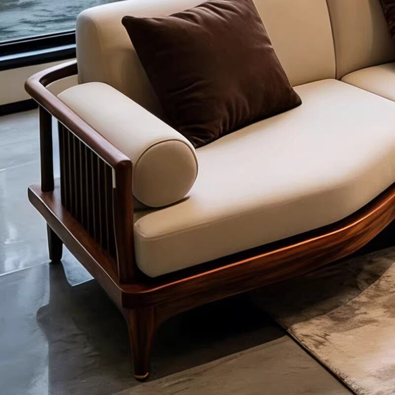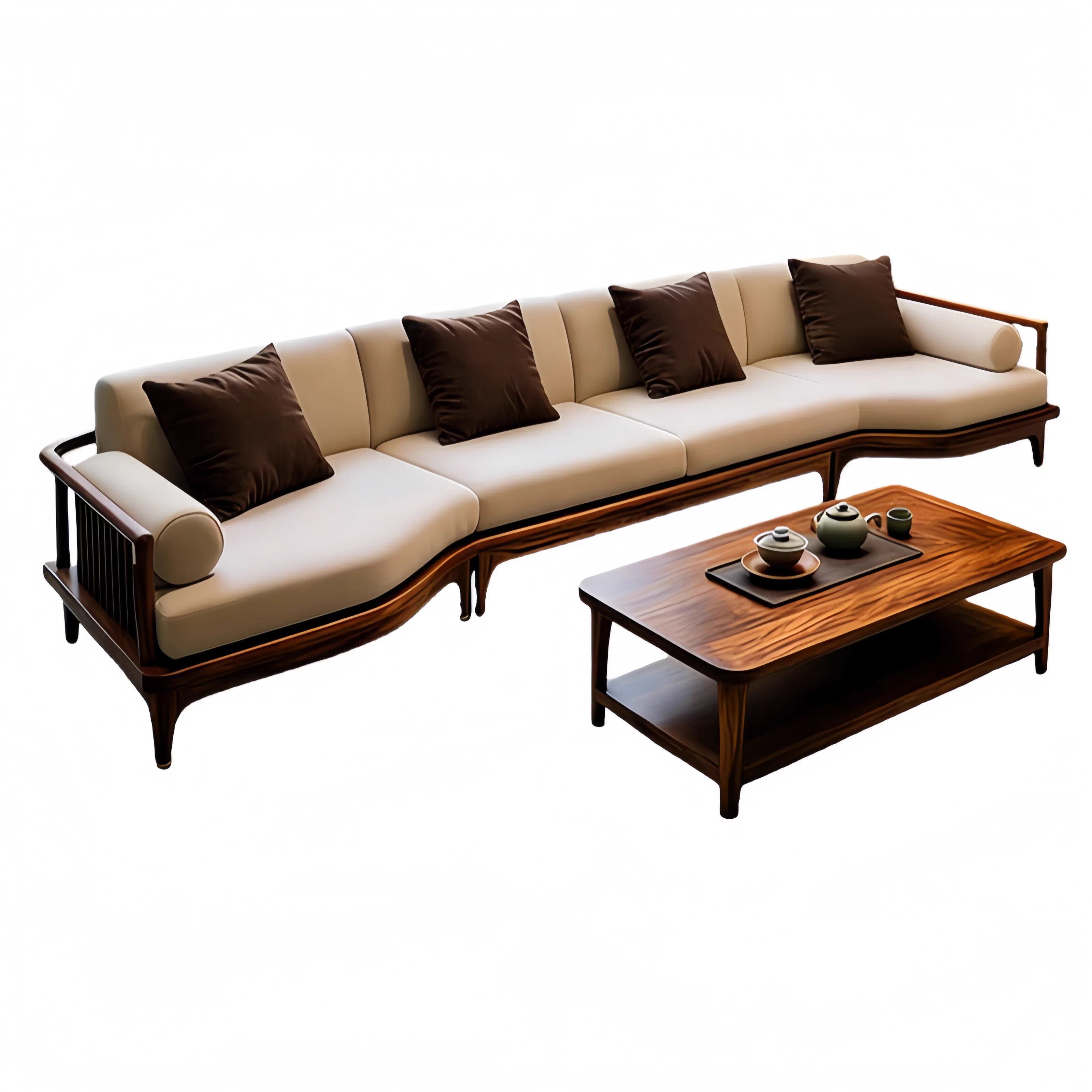 新中式实木沙发茶几组合现代简约客厅家具黑胡桃木定制布艺大沙发