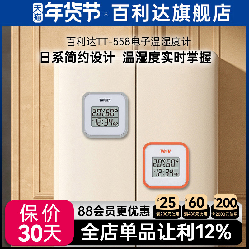 百利达TANITA电子数显温度湿度计多功能高精度家用计时室内TT-558
