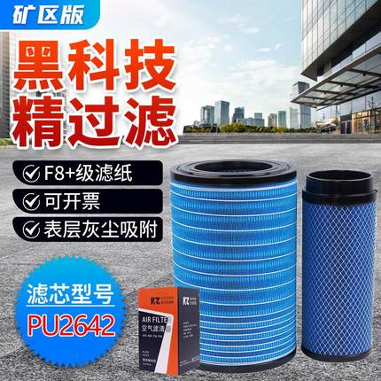 K2642空气滤芯适配柳工临工柳工玉柴30装载机YK2640-U空气滤芯