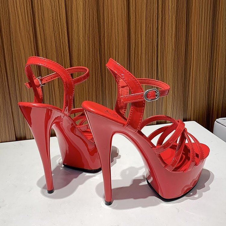 走秀神器模特高跟鞋细跟性感黑色防水台15cm恨天高超高跟凉鞋女夏