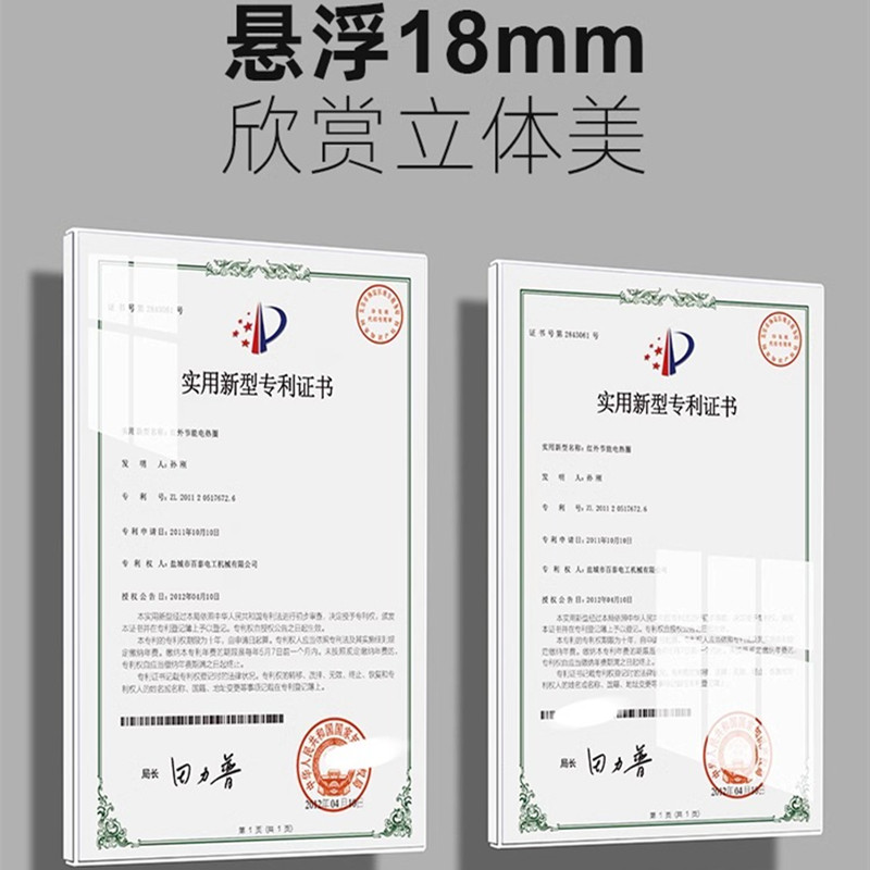 a4专利证书框挂墙营业执照框架软著展示框挂墙a3亚克力相框荣誉墙