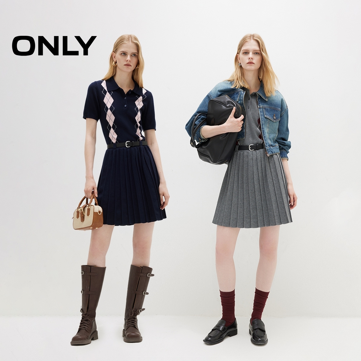 o区绫致ONLY2025秋冬新款学院风假两件翻领菱格短裙连衣裙女