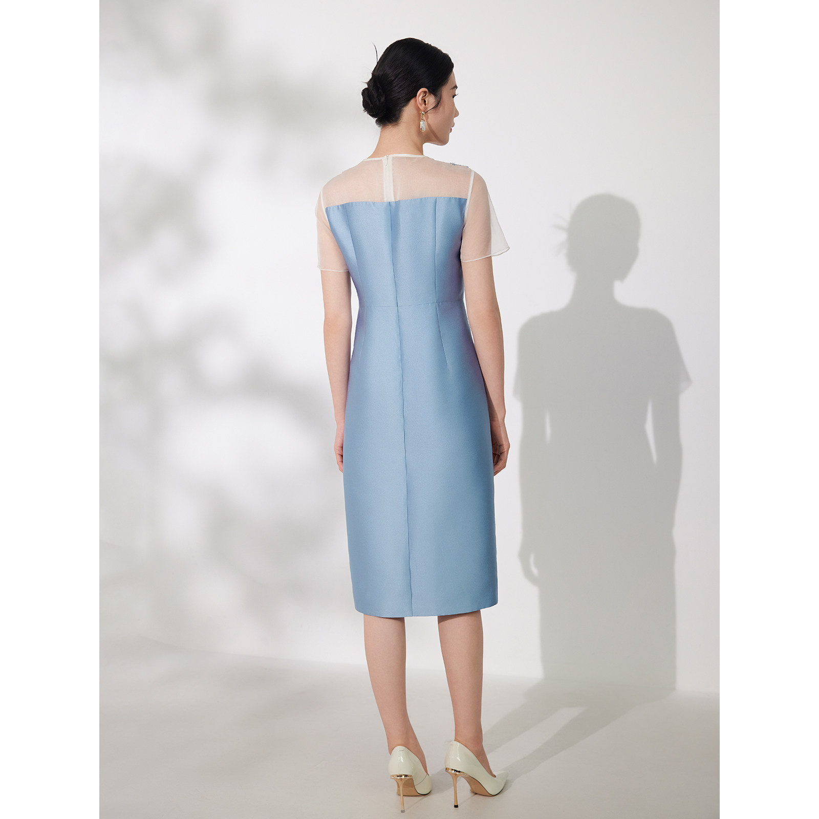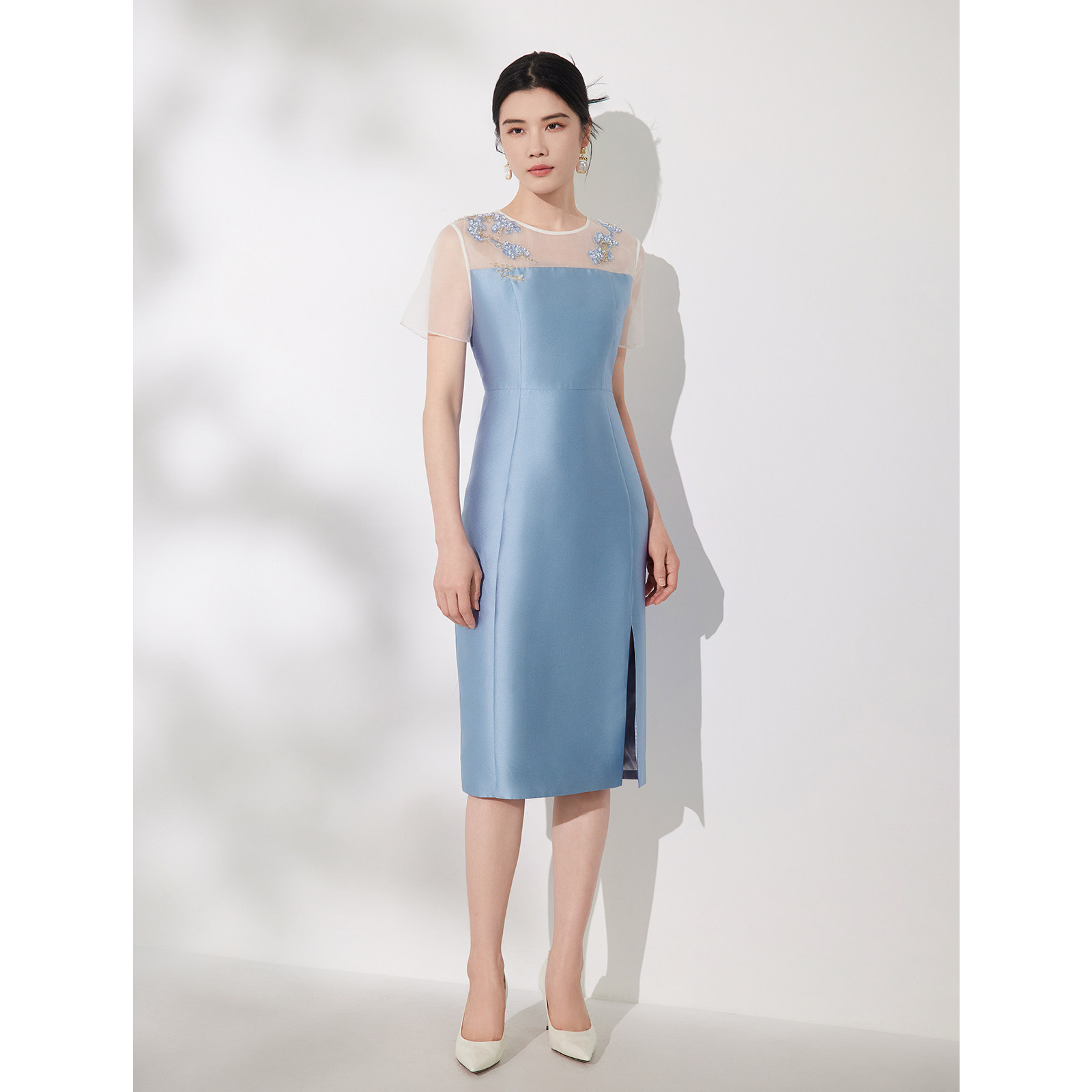 BBLLUUEE/粉蓝衣橱东方感刺绣轻礼服裙女2025夏装光感拼接连衣裙