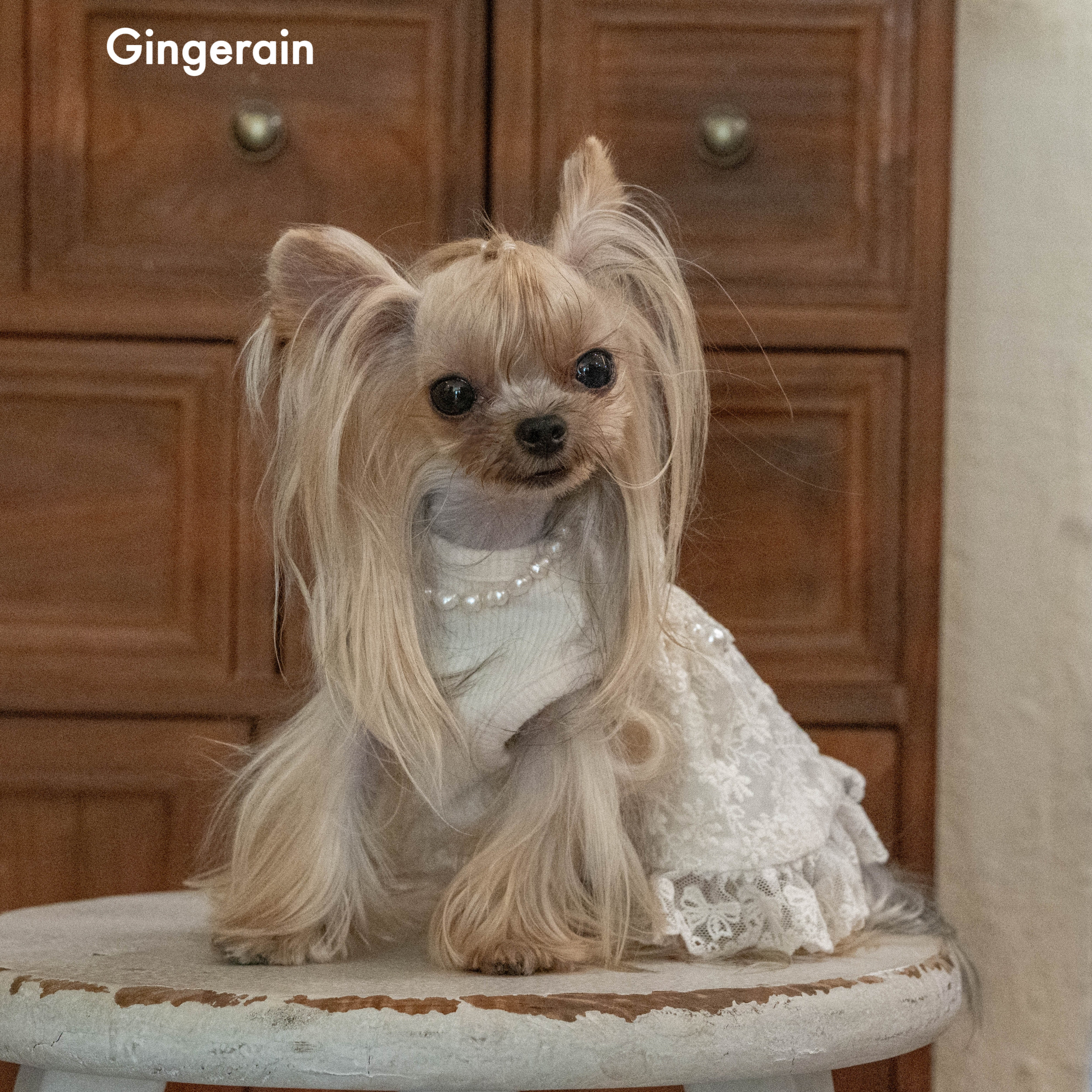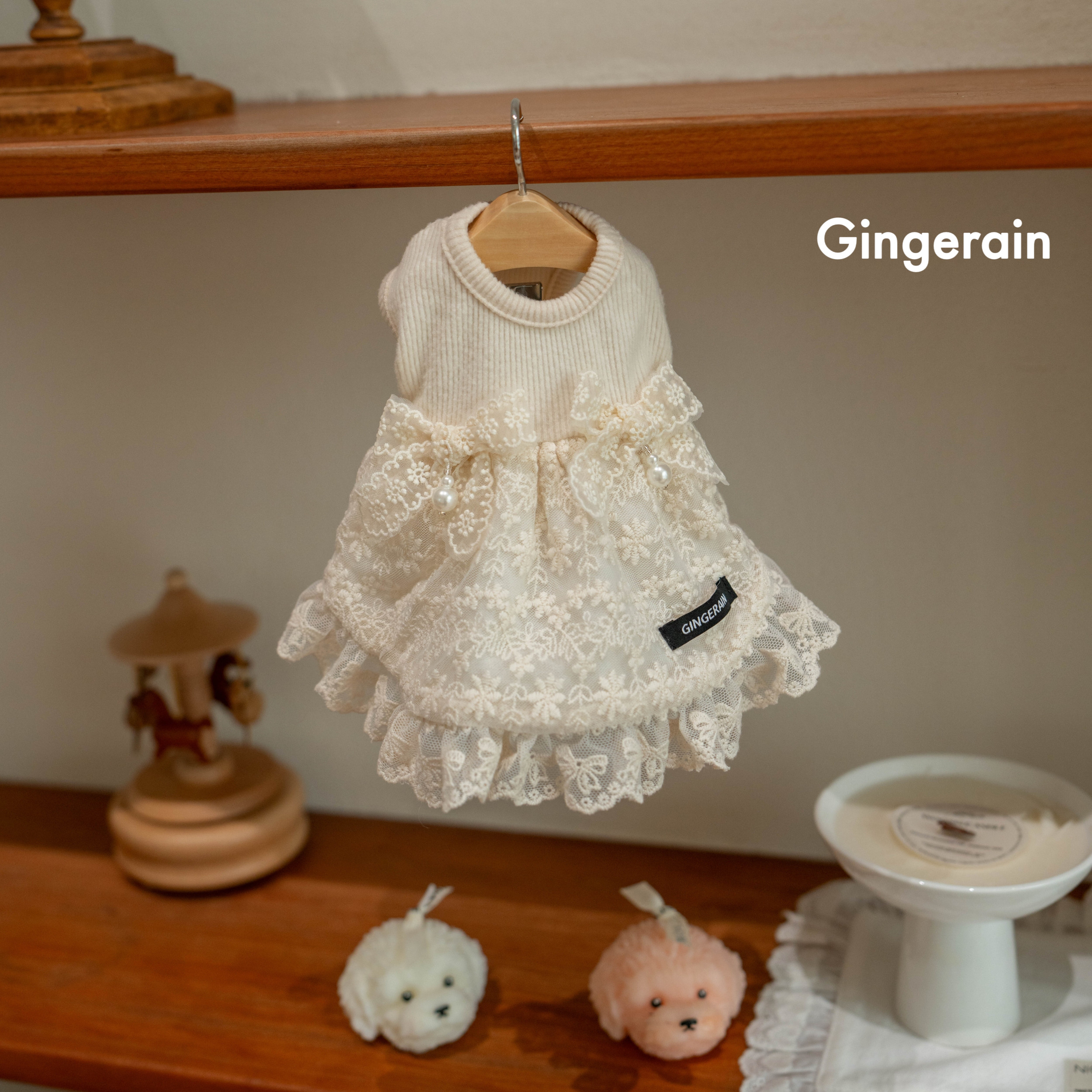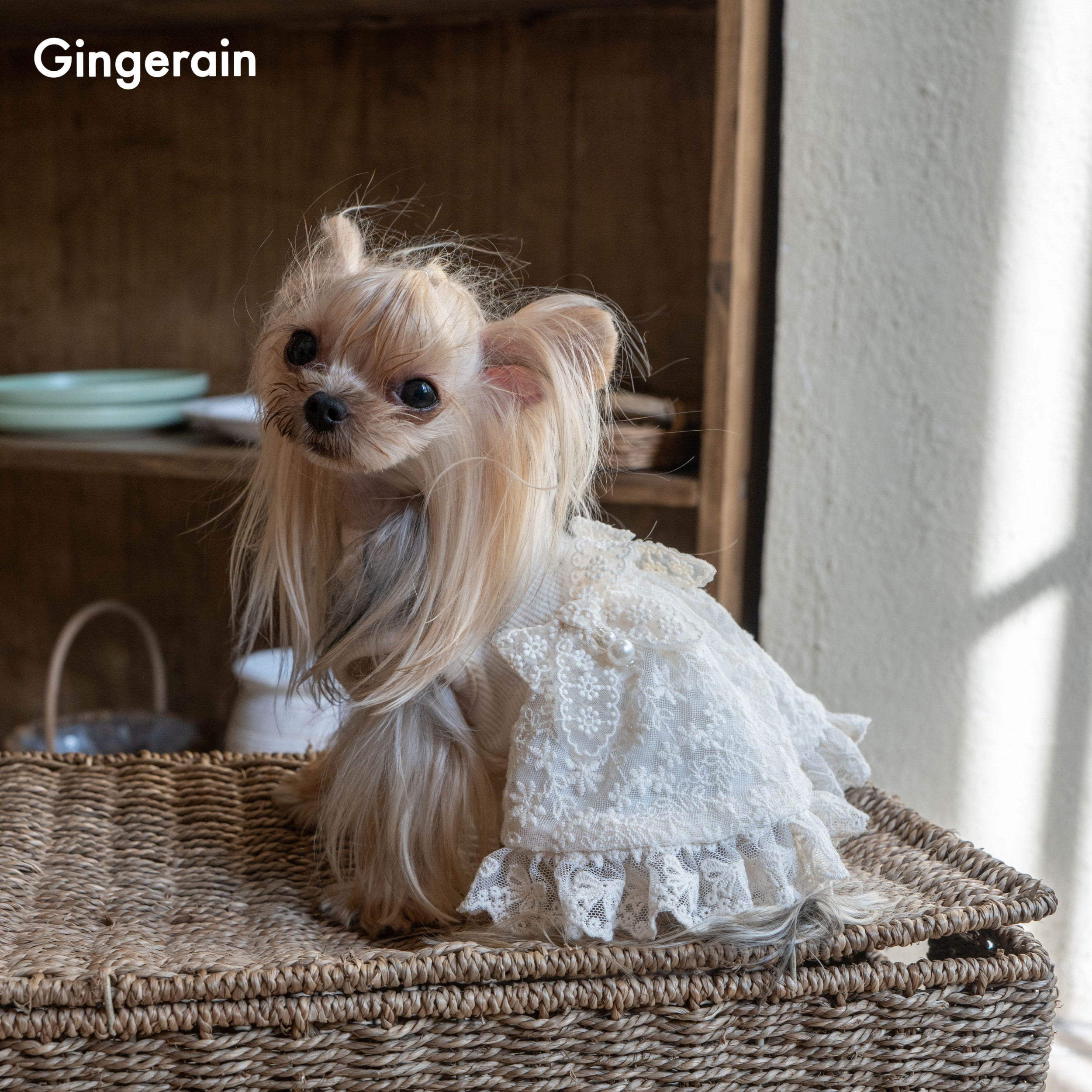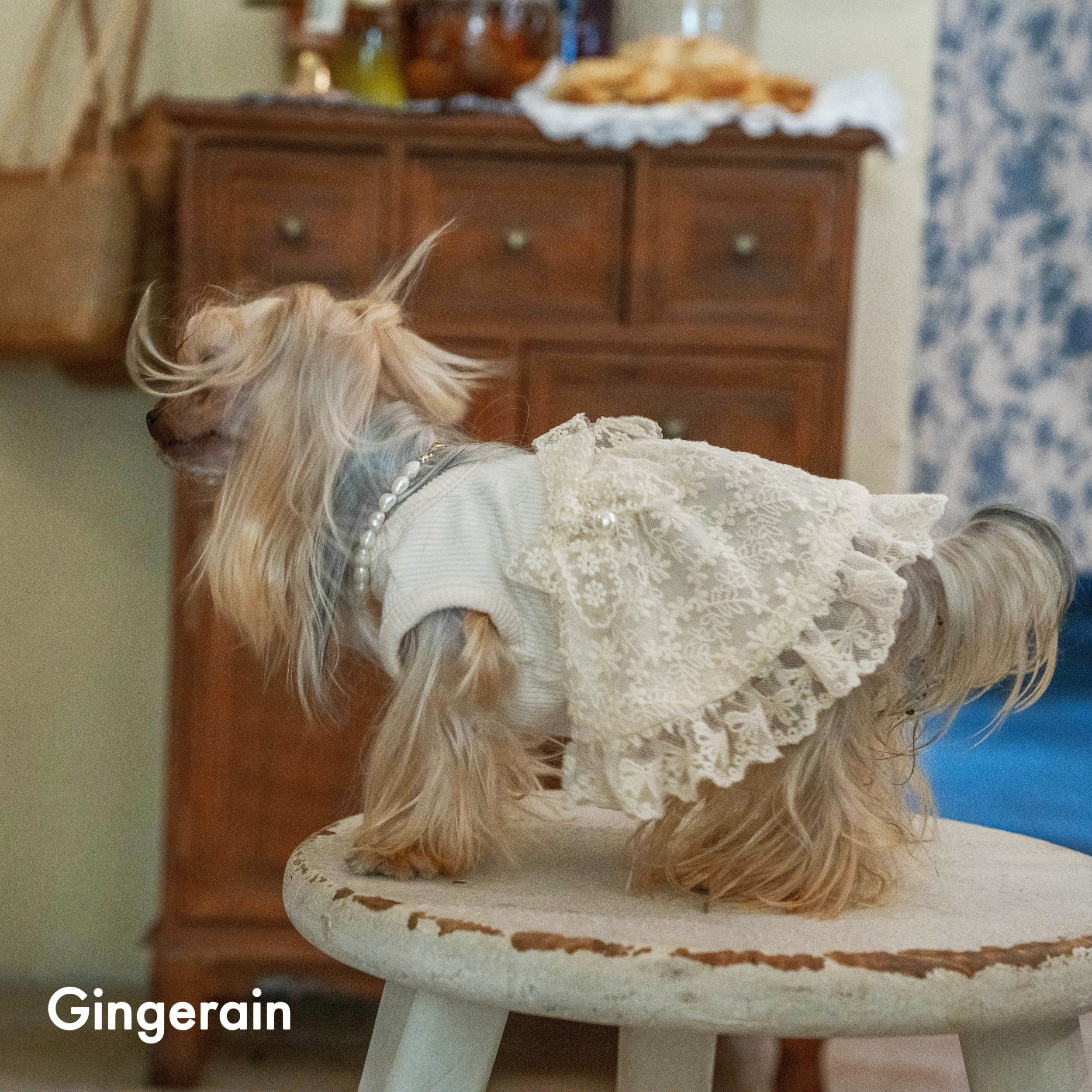 GINGERAIN 米色蕾丝背心裙马尔济斯比熊衣服约克夏仙女网纱带内衬