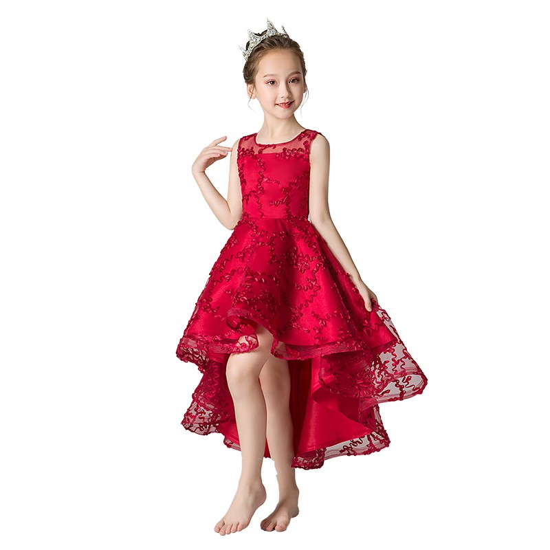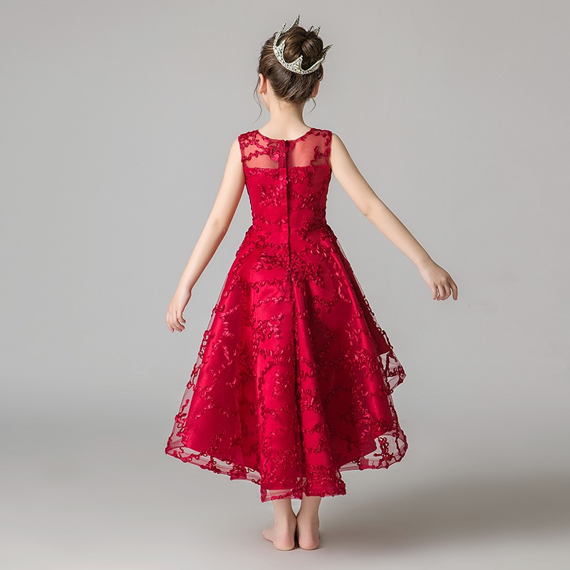 红色公主裙女童蓬l蓬纱生日小花童礼服主持人儿童钢琴演出服高端