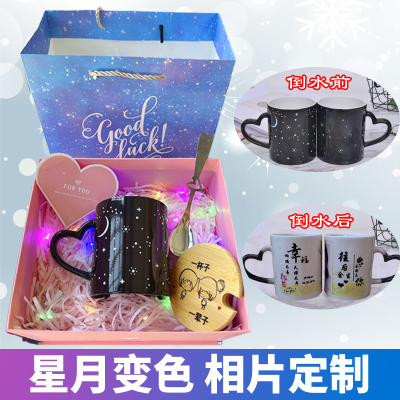 diy变色杯子定制照片刻字茶杯陶瓷杯创意情侣闺蜜生日礼物马克杯