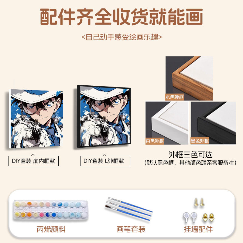 柯南diy数字油画怪盗基德手工填色画解压卡通动漫填充涂色油彩画