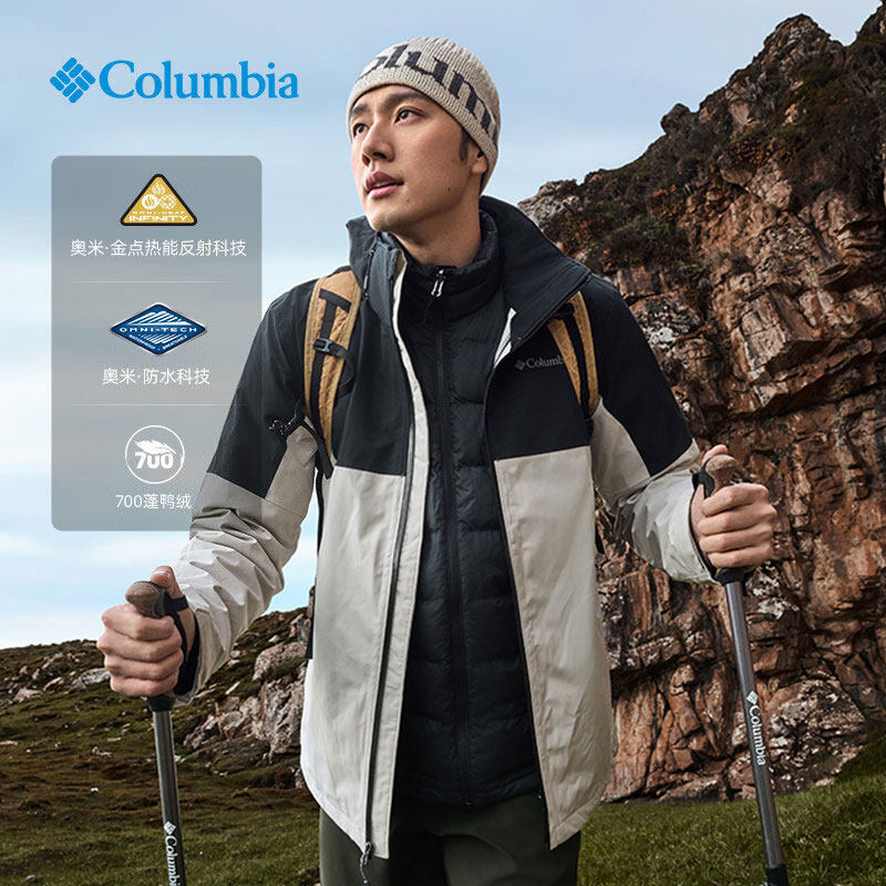 Columbia哥伦比亚冲锋衣男士25秋冬新款户外防水羽绒三合一WE6671