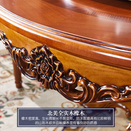 粤港家具 欧式实木餐桌餐厅成套家具组合美式圆桌饭桌组合