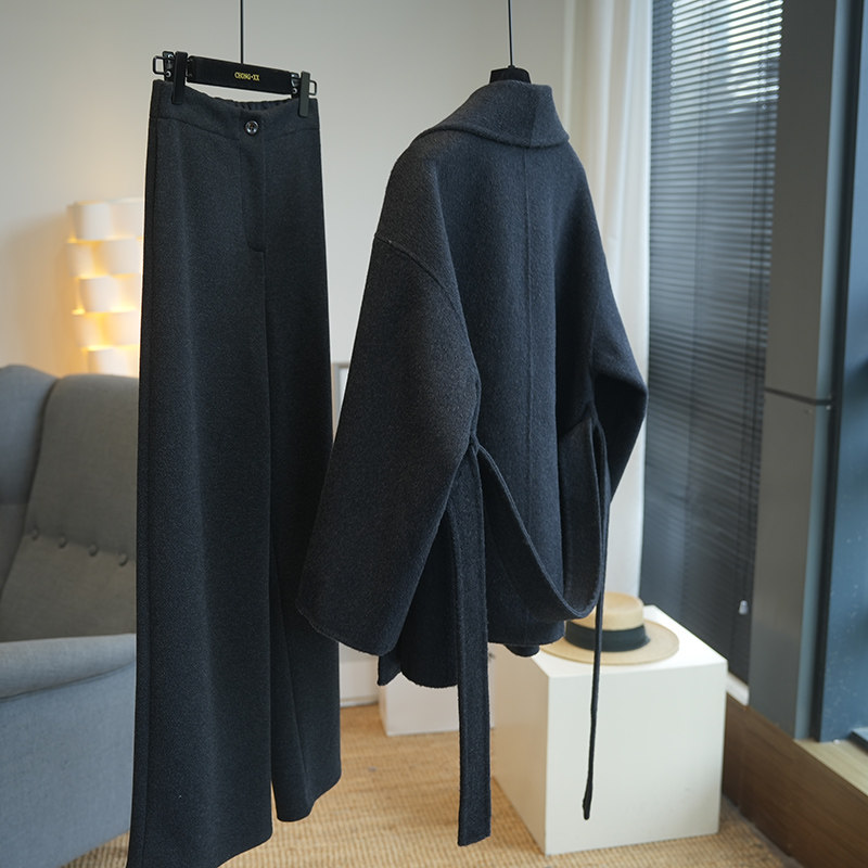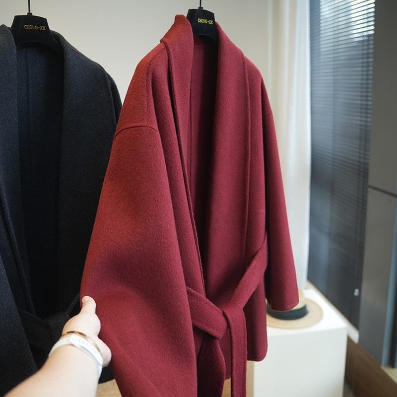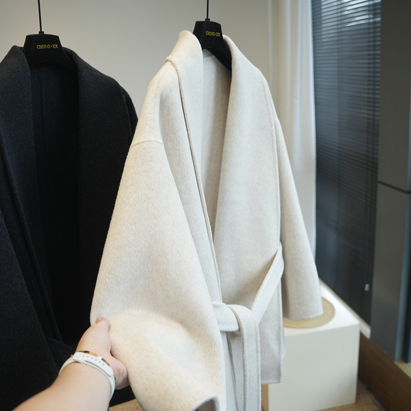 柜上2W+优雅气质羊绒羊毛系带收腰双面呢大衣女呢子外套秋冬A72R