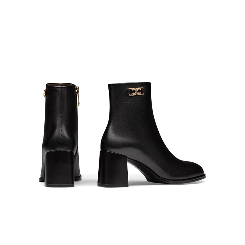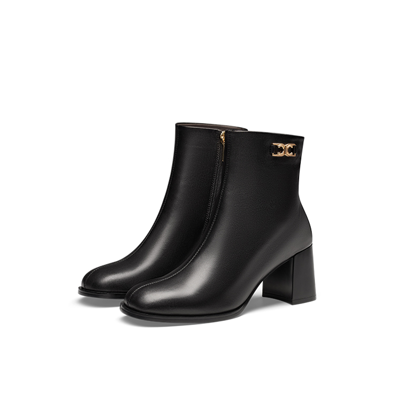 KISS CAT/接吻猫秋冬牛皮时装靴圆头粗高跟通勤短靴女KA43704-10
