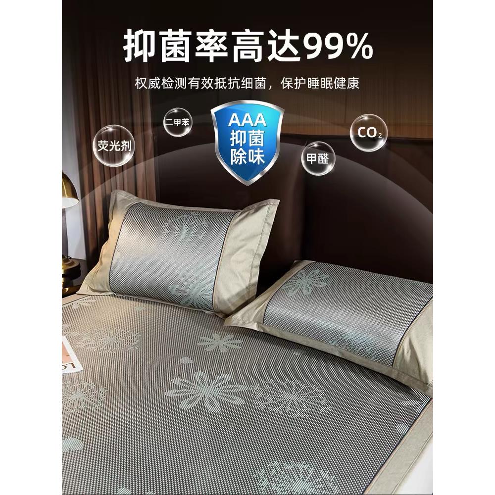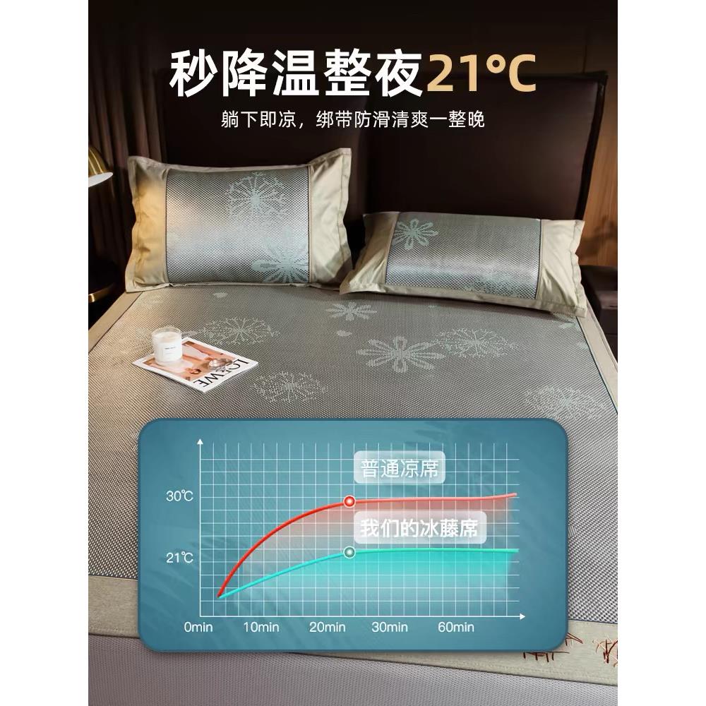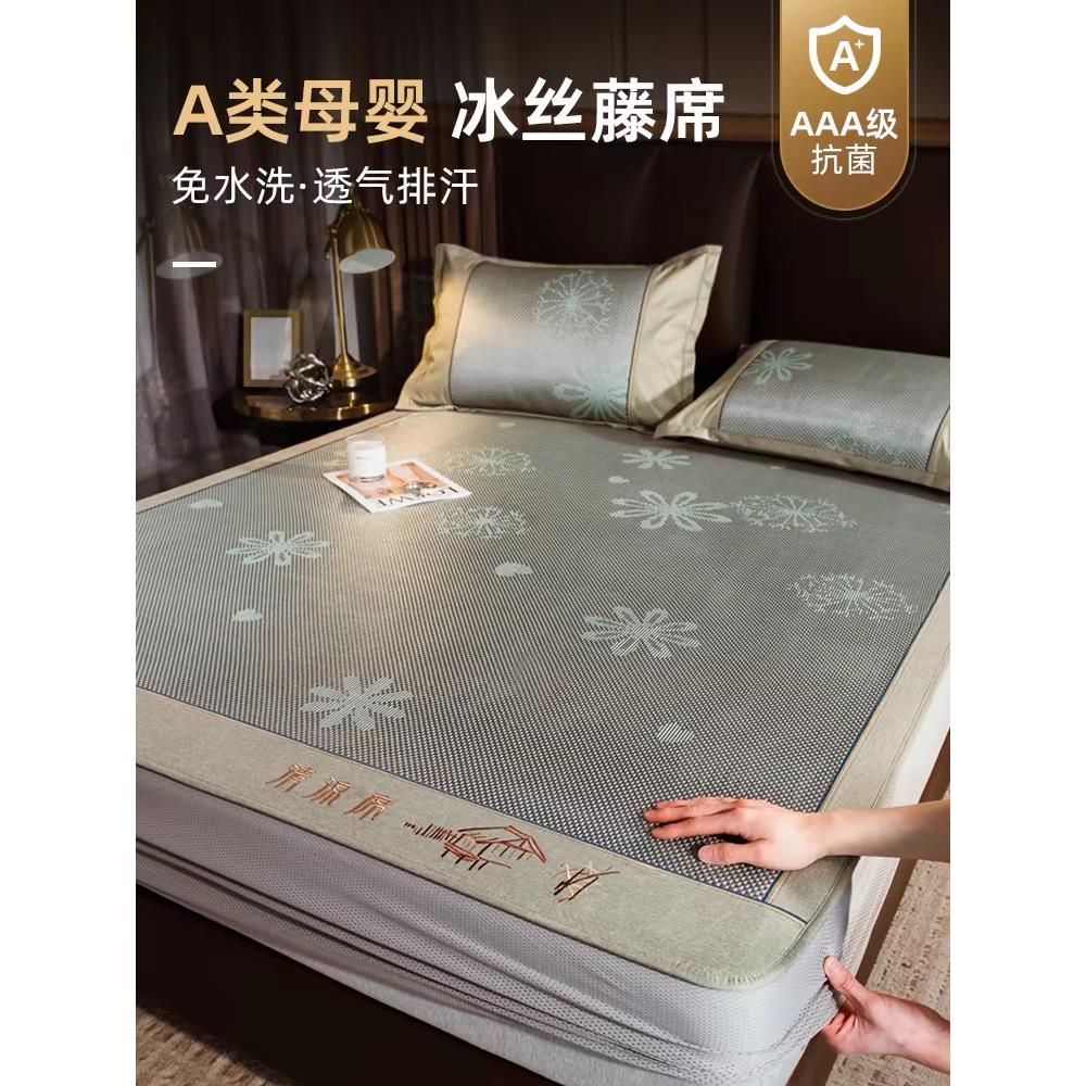 冰丝凉席可水洗2024夏天草席天然纯藤席三件套裸睡夏季床笠款席子