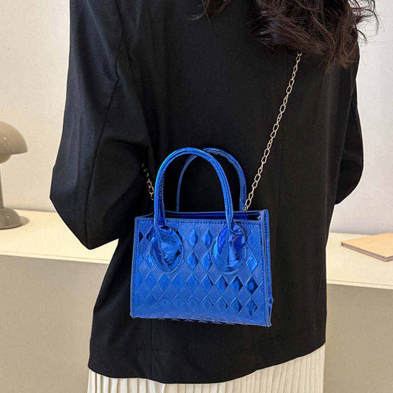 麦瑞雅漆皮时尚链条菱格小方包
