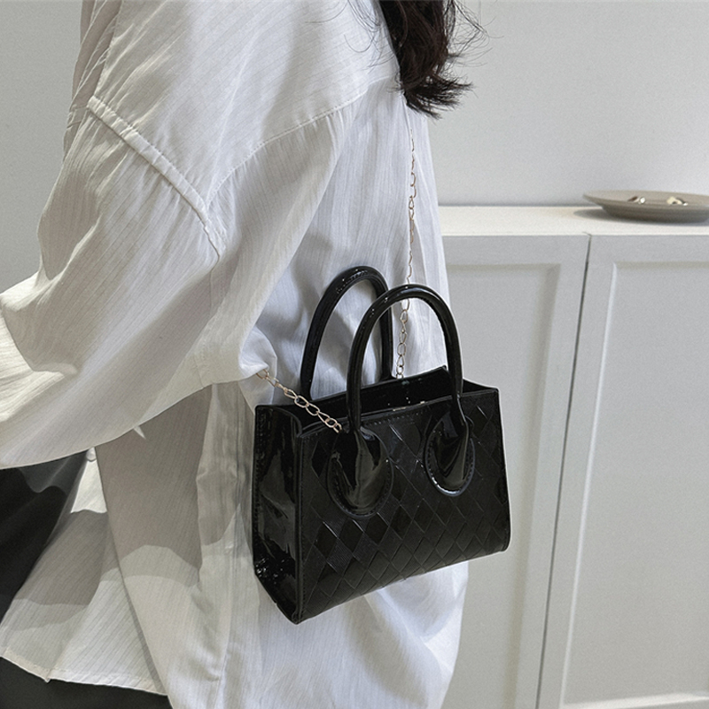 小众高级感菱格小方包女2023新款漆皮时尚链条复古手提单肩斜挎包