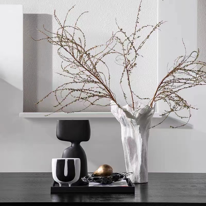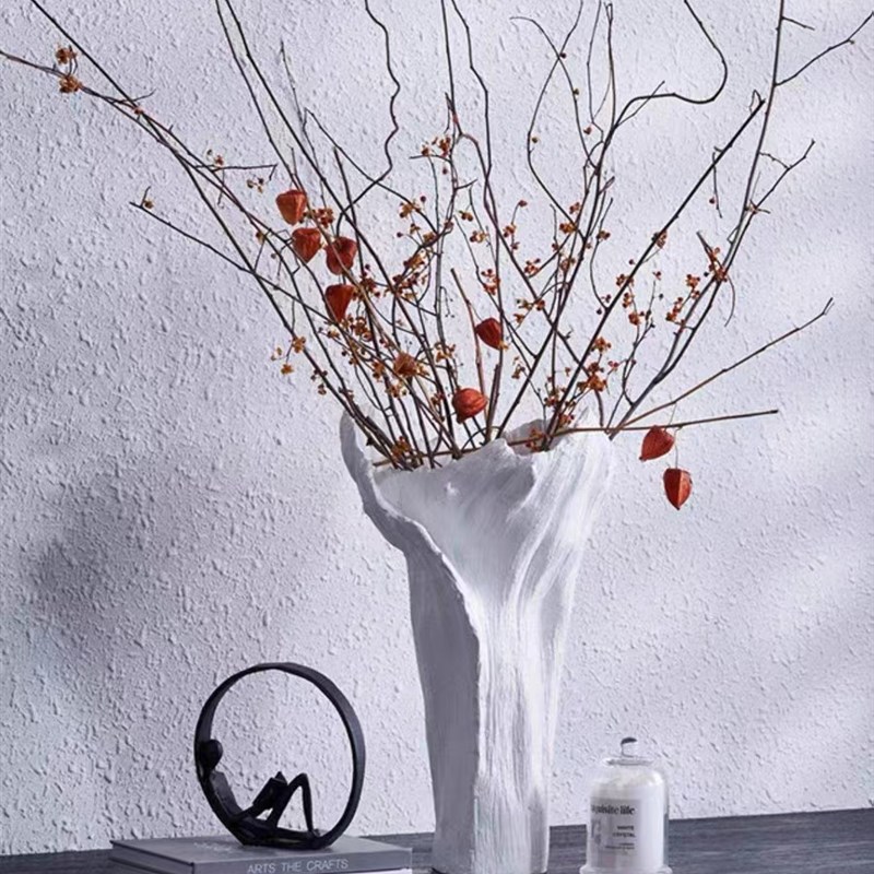 现代侘寂创不规则大花瓶花器摆件酒店玄关入户样板房插花白色花器