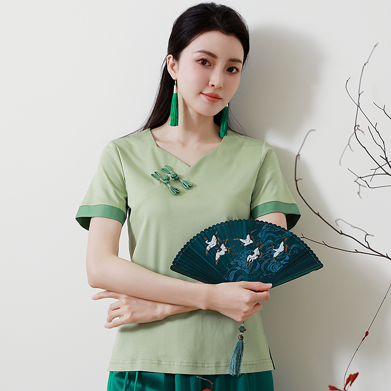 新中式T恤夏装女复古盘扣打底衫中国风桑蚕丝短袖上衣禅意茶服