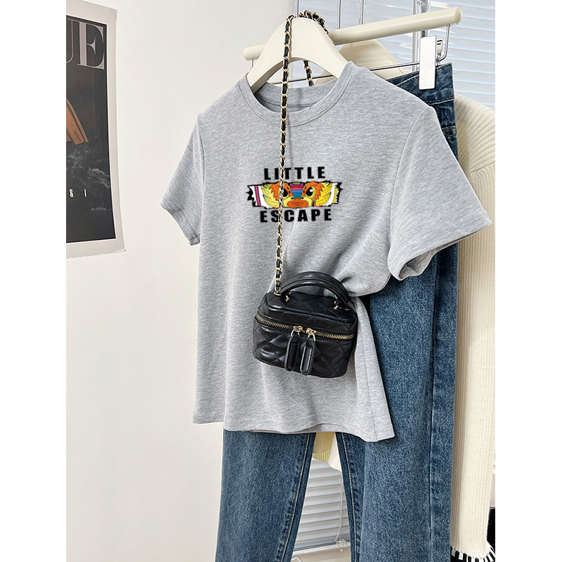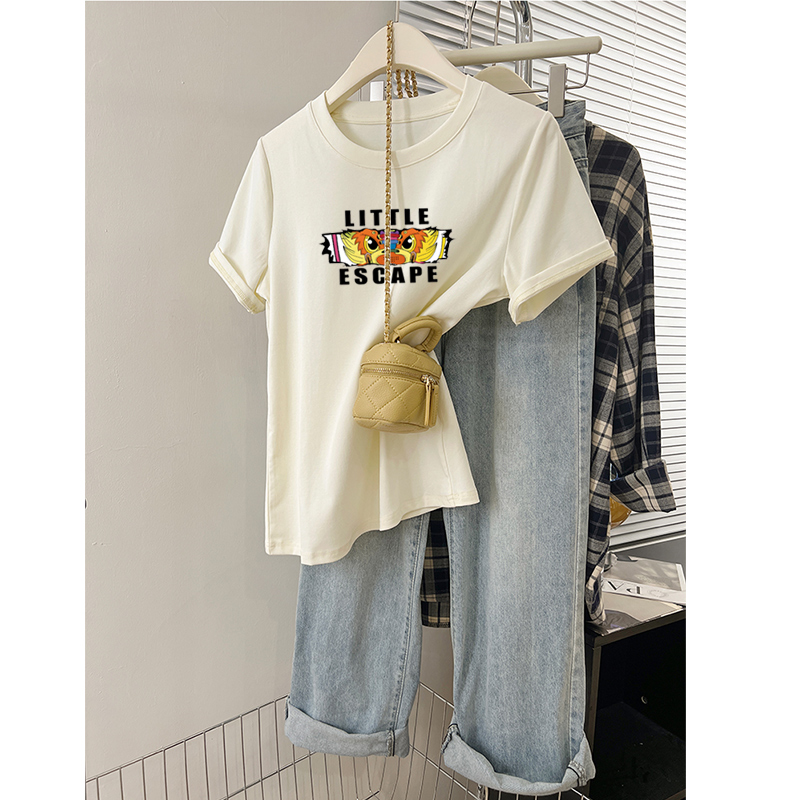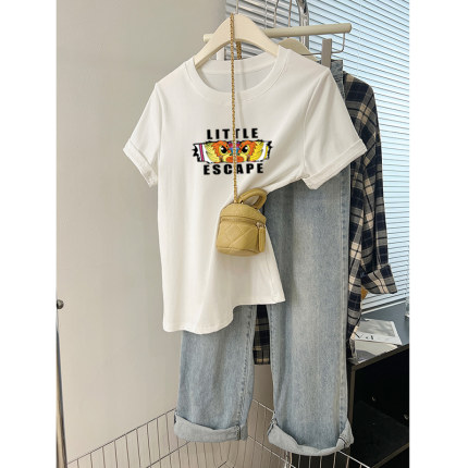 纯棉卡通印花短袖T恤女夏季新款洋气修身显瘦短款百搭上衣潮