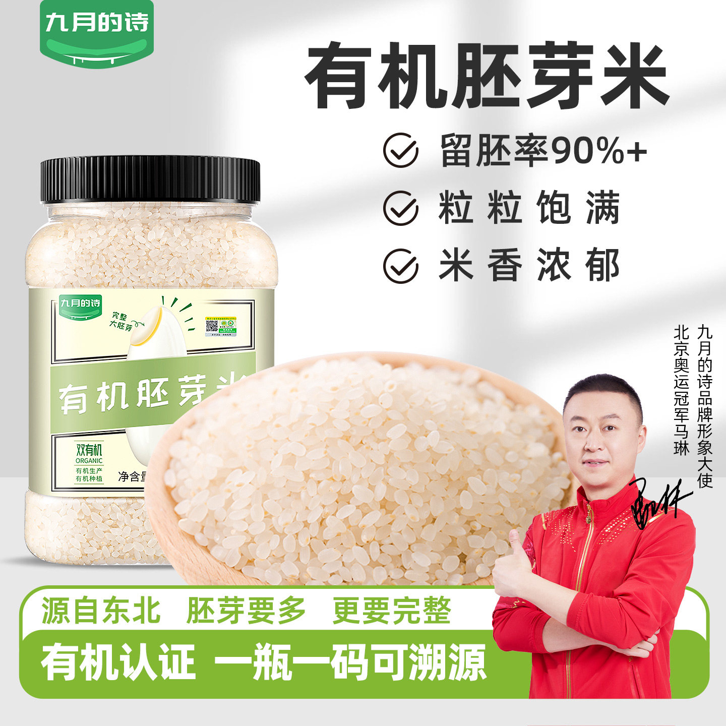九月的诗有机胚芽米1000g*1密封罐专用大米,送宝宝婴幼儿辅食食谱