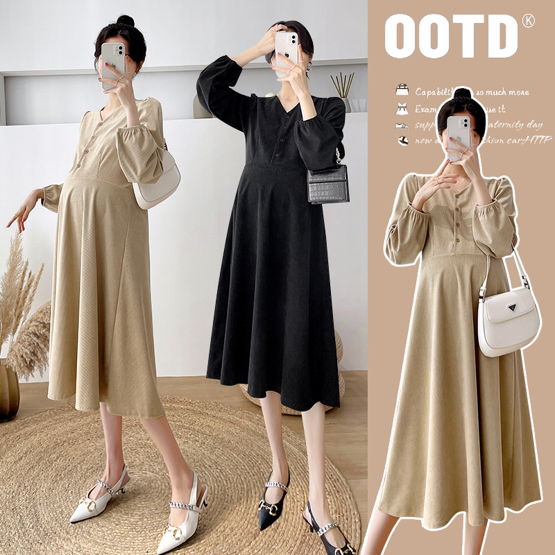 孕妇装秋装时尚长袖灯芯绒连衣裙2025新款孕妇裙秋季简约怀孕裙子