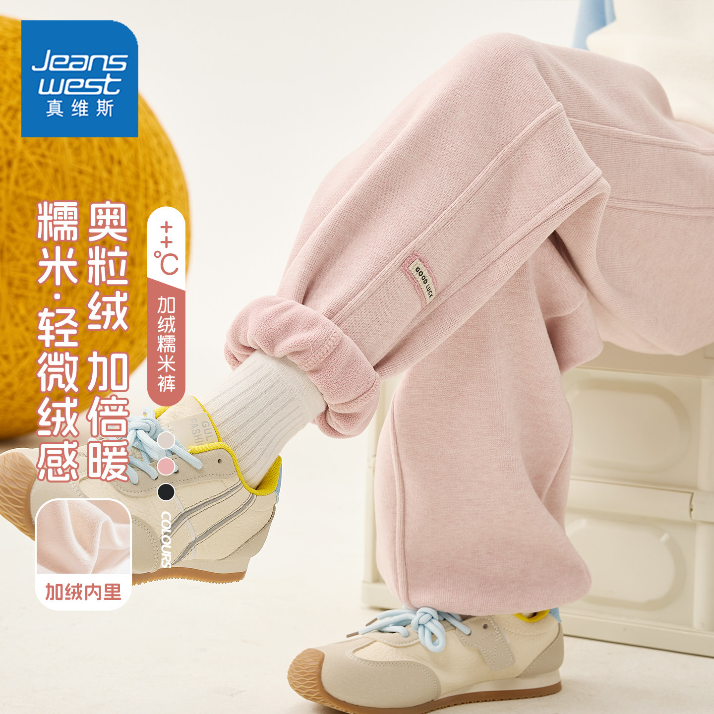 真维斯女童加绒裤子2025新款女孩长裤加厚保暖卫裤冬季儿童糯米裤