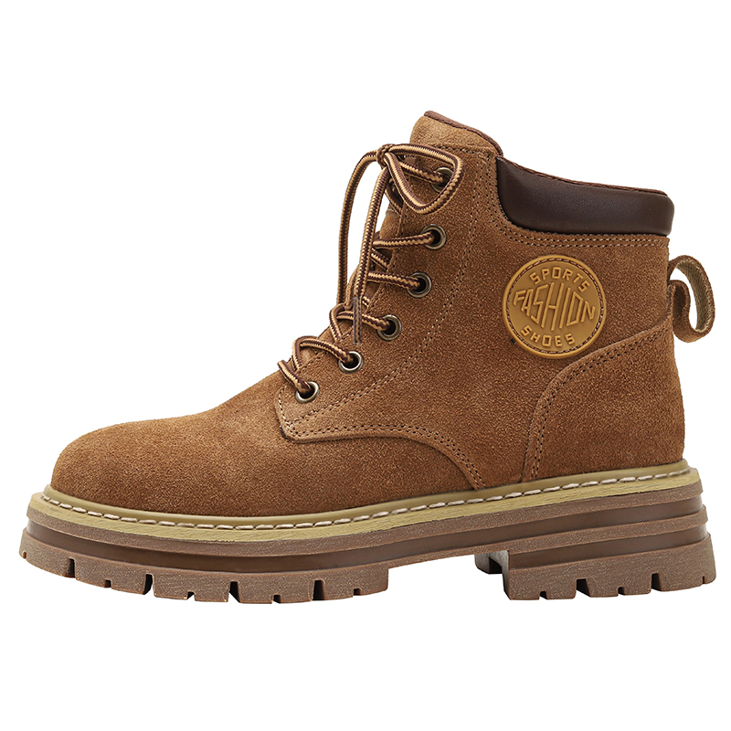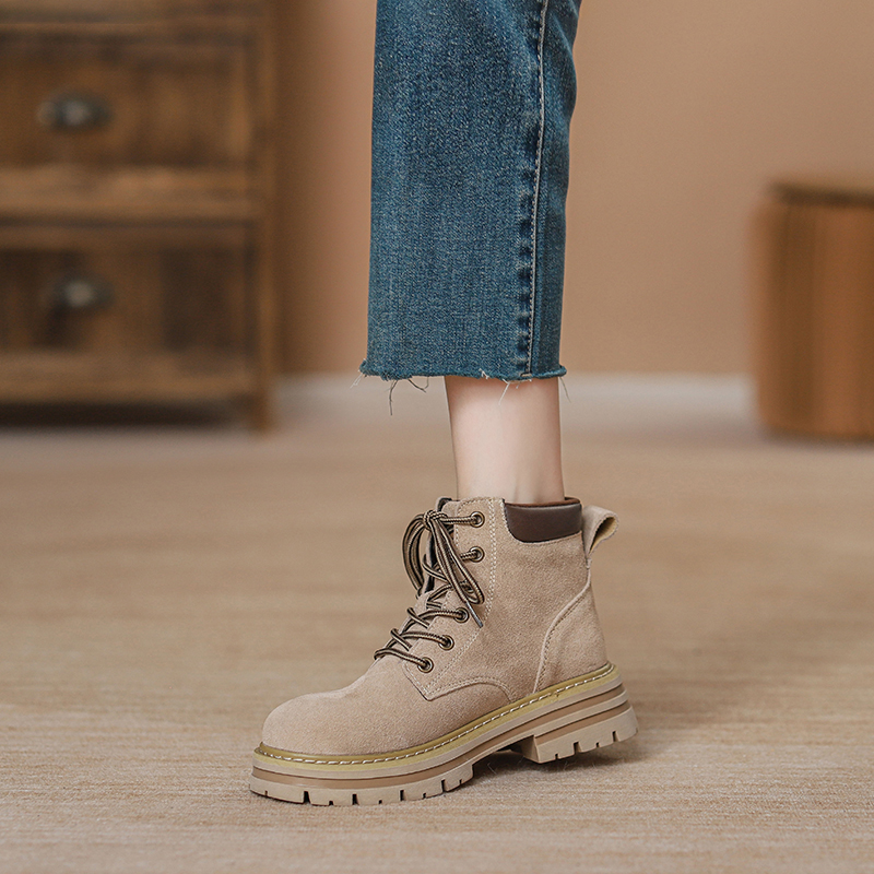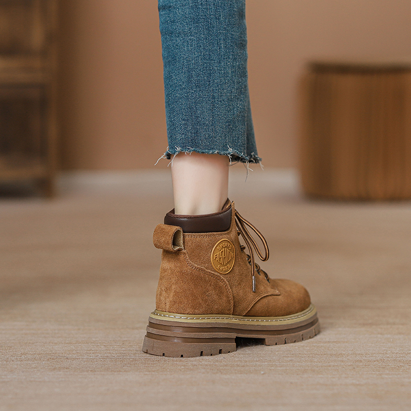 磨砂真皮厚底马丁靴女2025秋冬新款短靴英伦风加绒棕色复古大黄靴