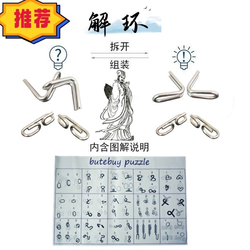 正品解扣玩具九连环智力解锁环益智玩具鲁班锁孔明锁套装小学生