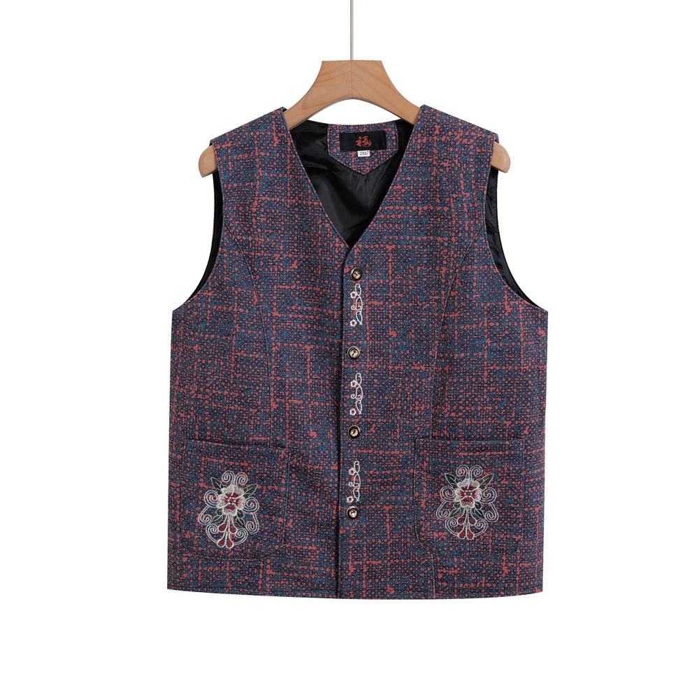 日本品质奶奶春装V领马甲中老年人女妈妈春秋季背心70岁80老太太