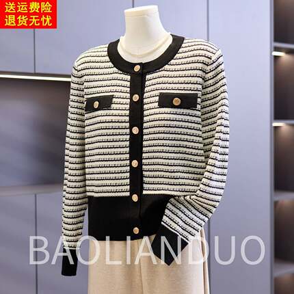 洋气妈妈秋装针织开衫中年女装条纹上衣服中老年春秋薄款毛衣外套