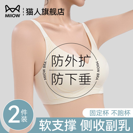 猫人无痕内衣女士聚拢收副乳防下垂外扩大胸显小上托调整型文胸罩