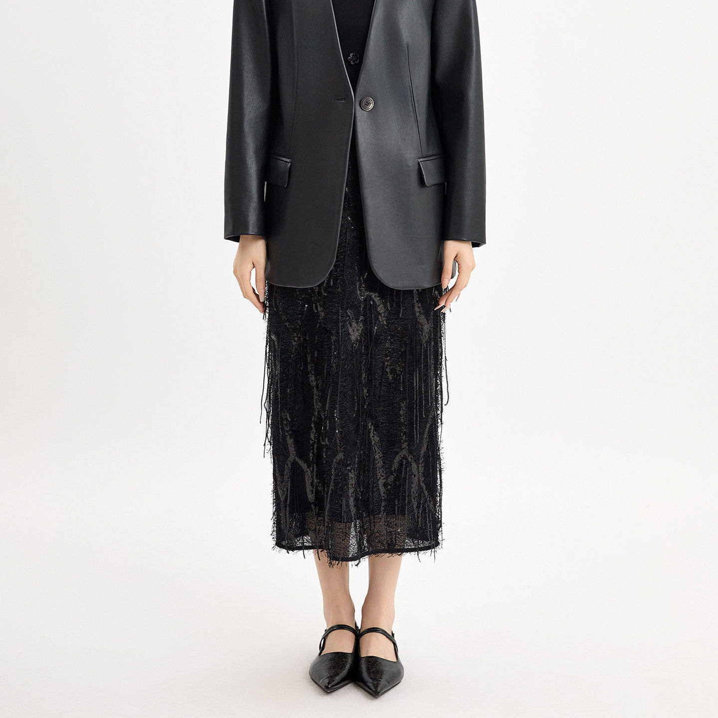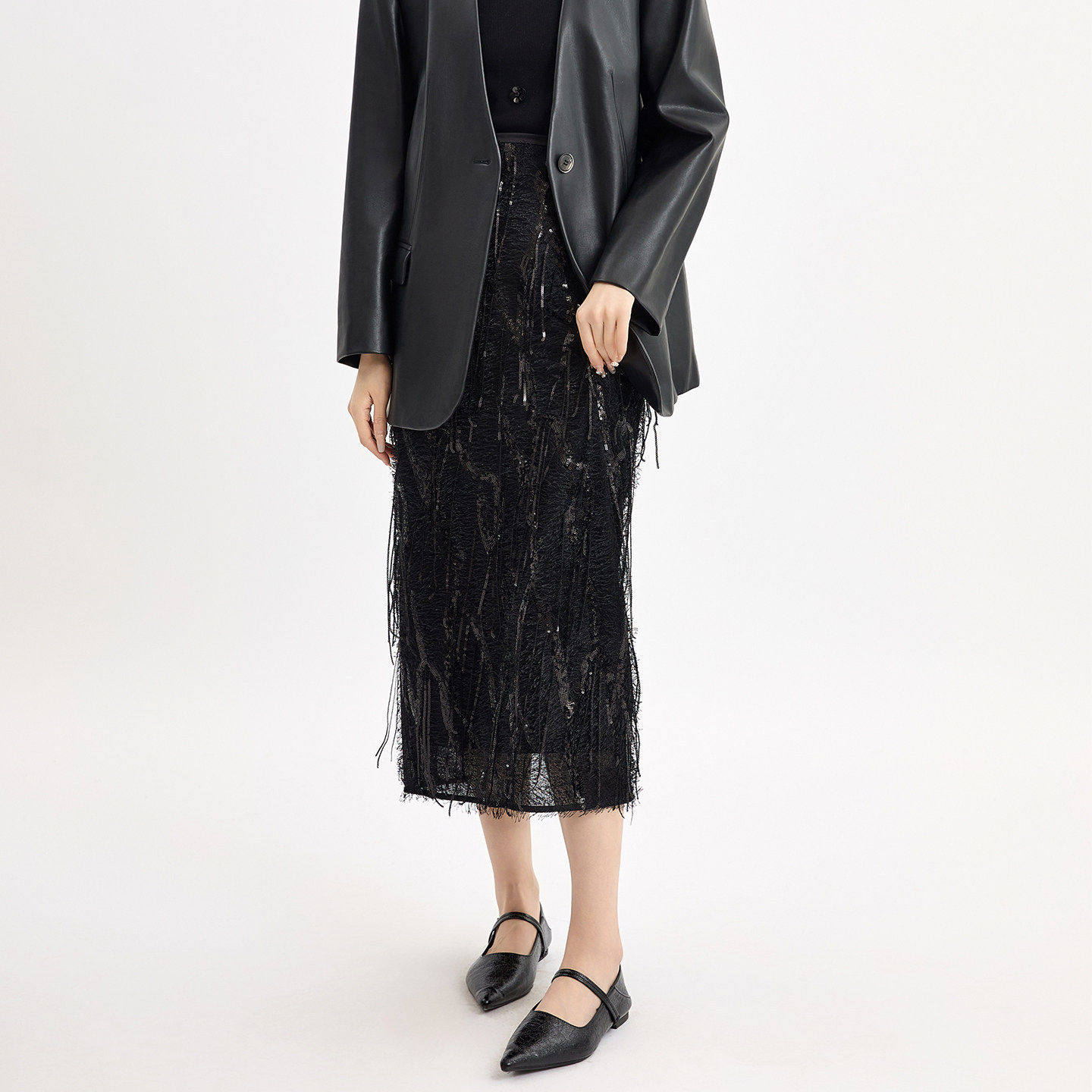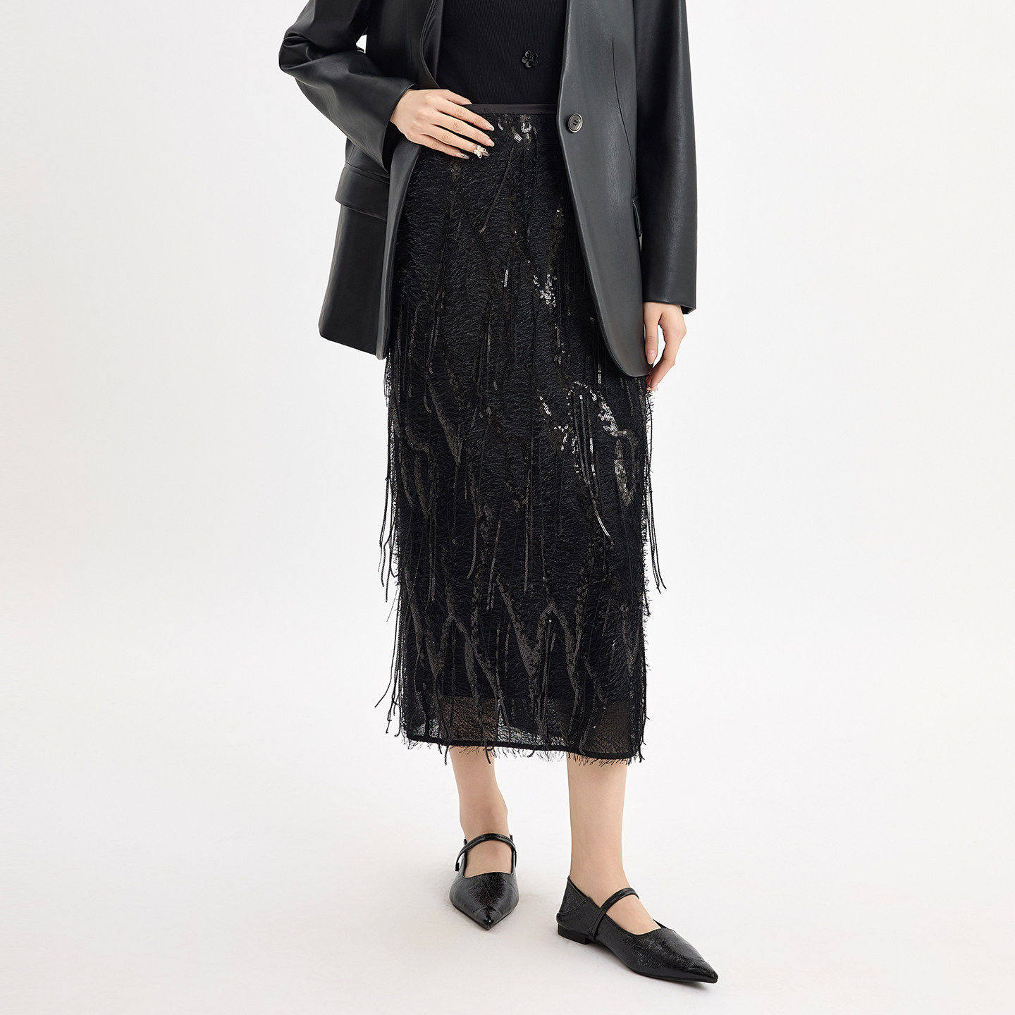 蜜澳2026春季华丽亮片流苏半身裙别致镂空高级感A字裙气质
