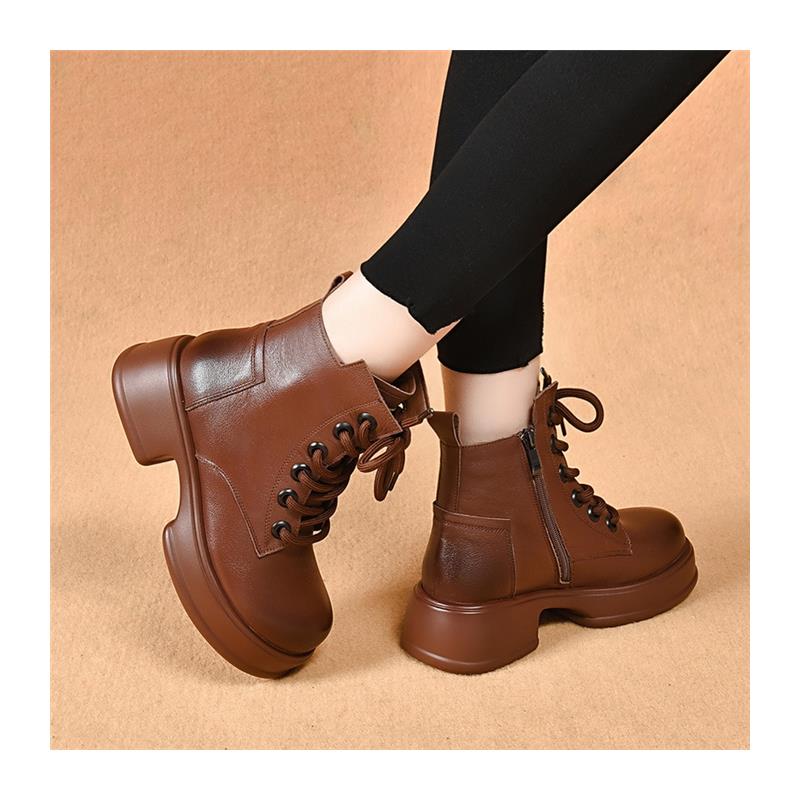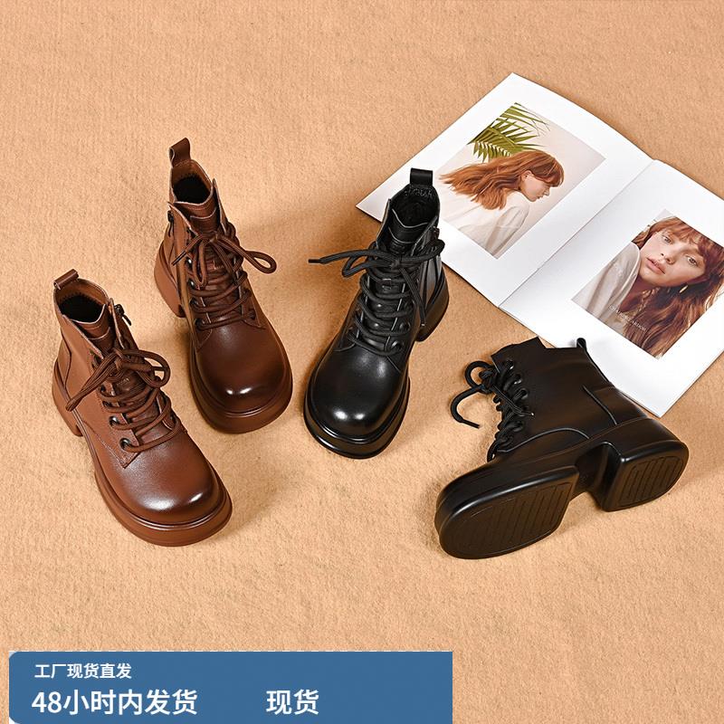 2024年秋冬新款厚底马丁靴女中高跟防水台英伦风系带侧拉链小短靴