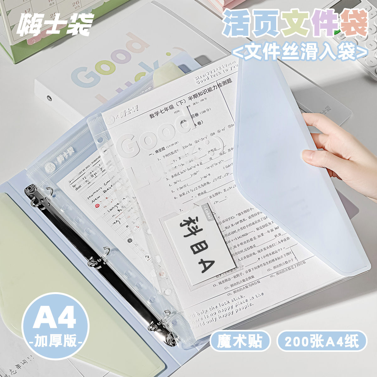 嗨士袋×三年二班 加厚活页文件袋A4文件夹文件分类多层合同收纳袋学生试卷收纳册卷子专用透明插页资料册