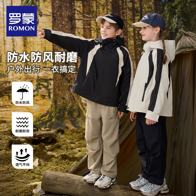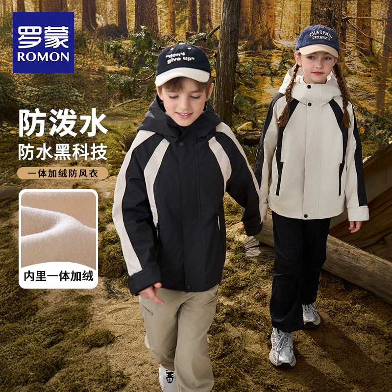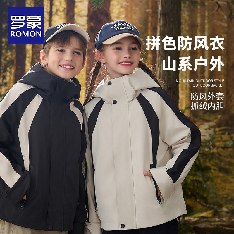 罗蒙童装儿童冲锋外套2025新款男女童中大童春秋款保暖拼色夹克潮